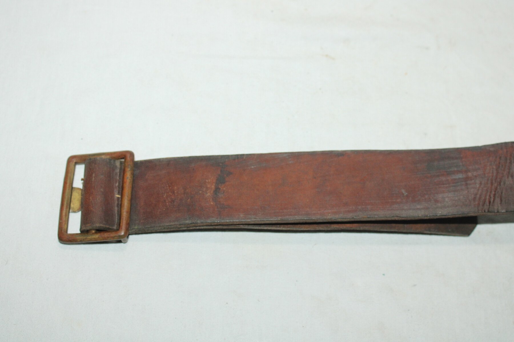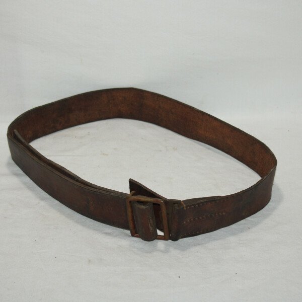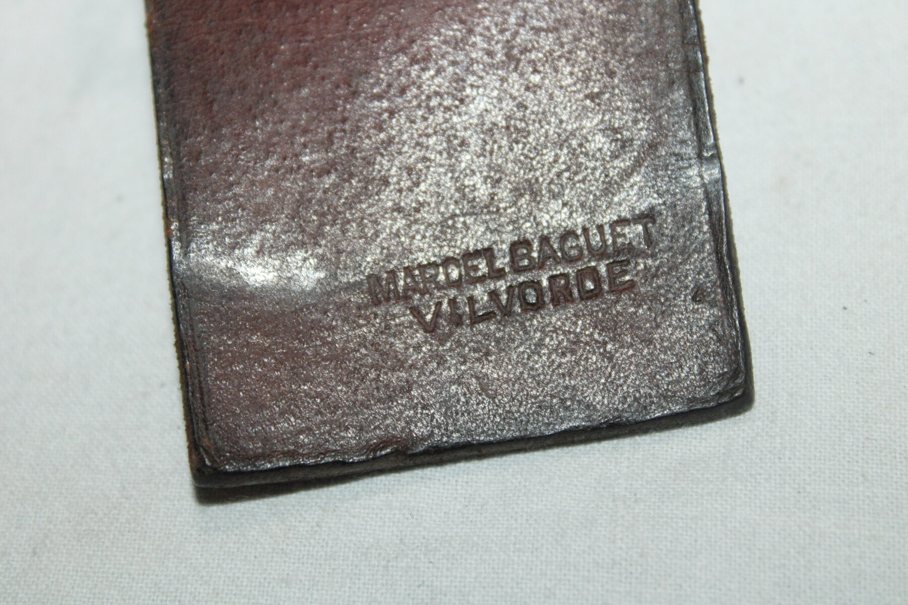 Ceinturon troupe belge en cuir fauve. Tampon de fabricant Marcel Baguet Vilvorde. Cuir à nourrir. Non recoupé.