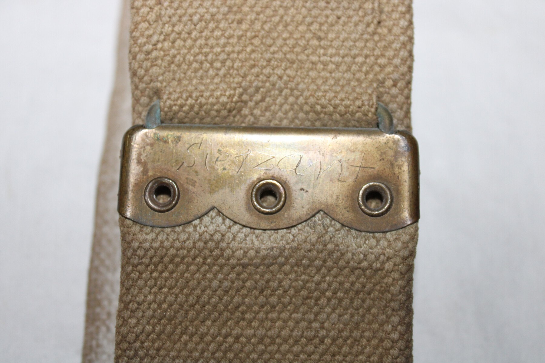 Ceinturon en web, blancoté en blanc pour la Military Police et les gardes d'honneurs, taille S ceinturon daté 1942. Un nom y est inscrit.