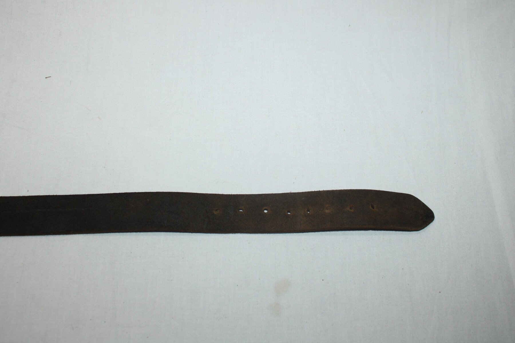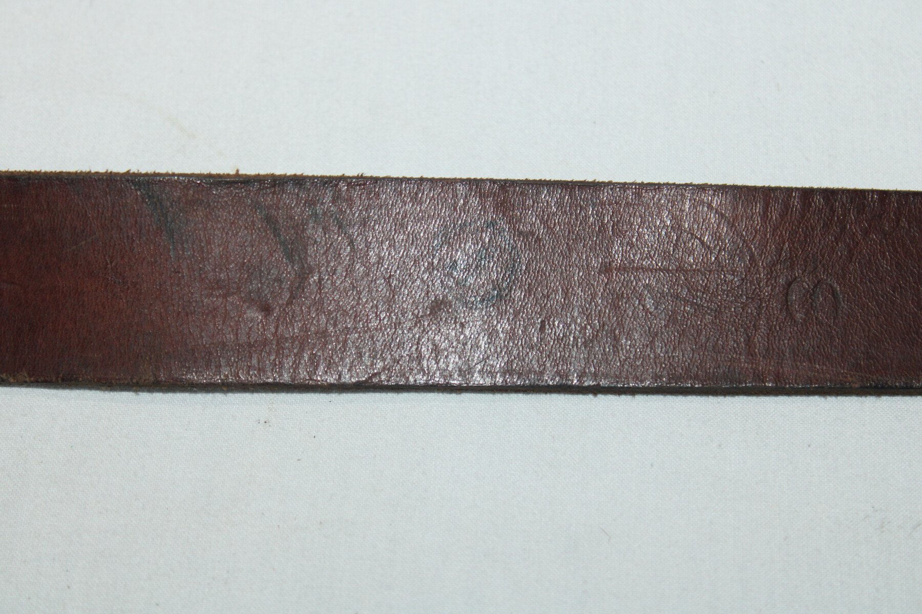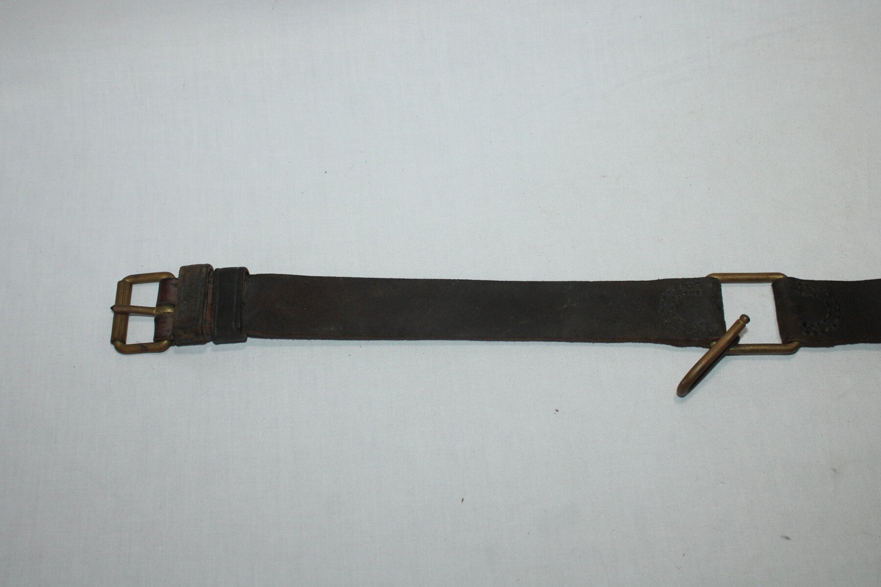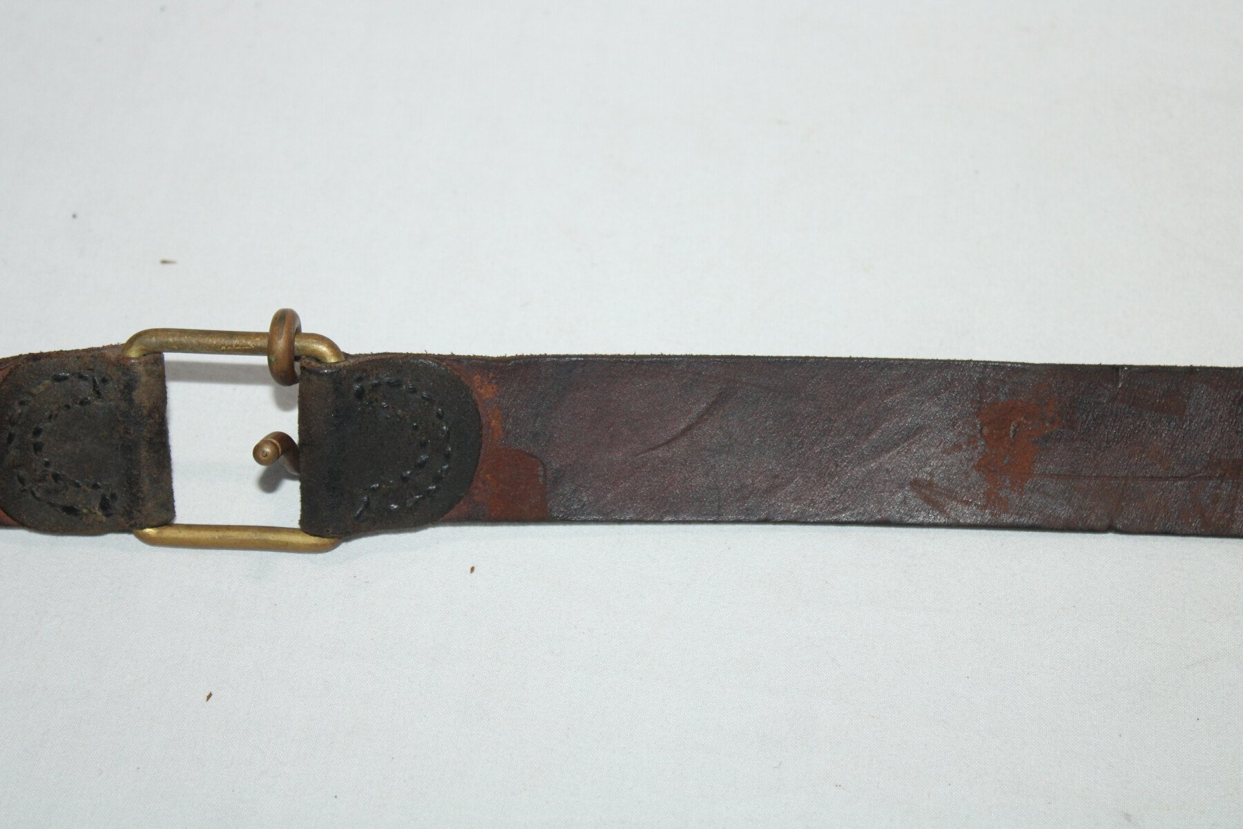 Ceinturon de cavalerie modèle 1884 en cuir noir. Marquage de date peu lisible. Cuir souple. Longueur 108cm.
