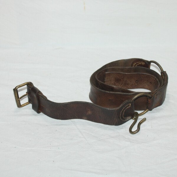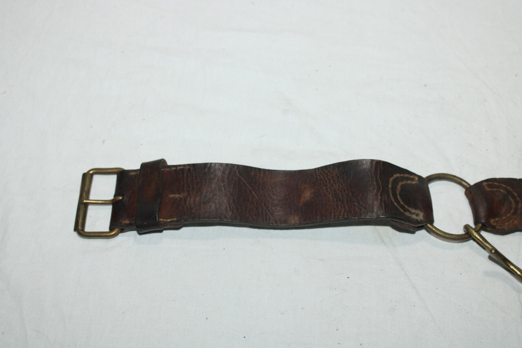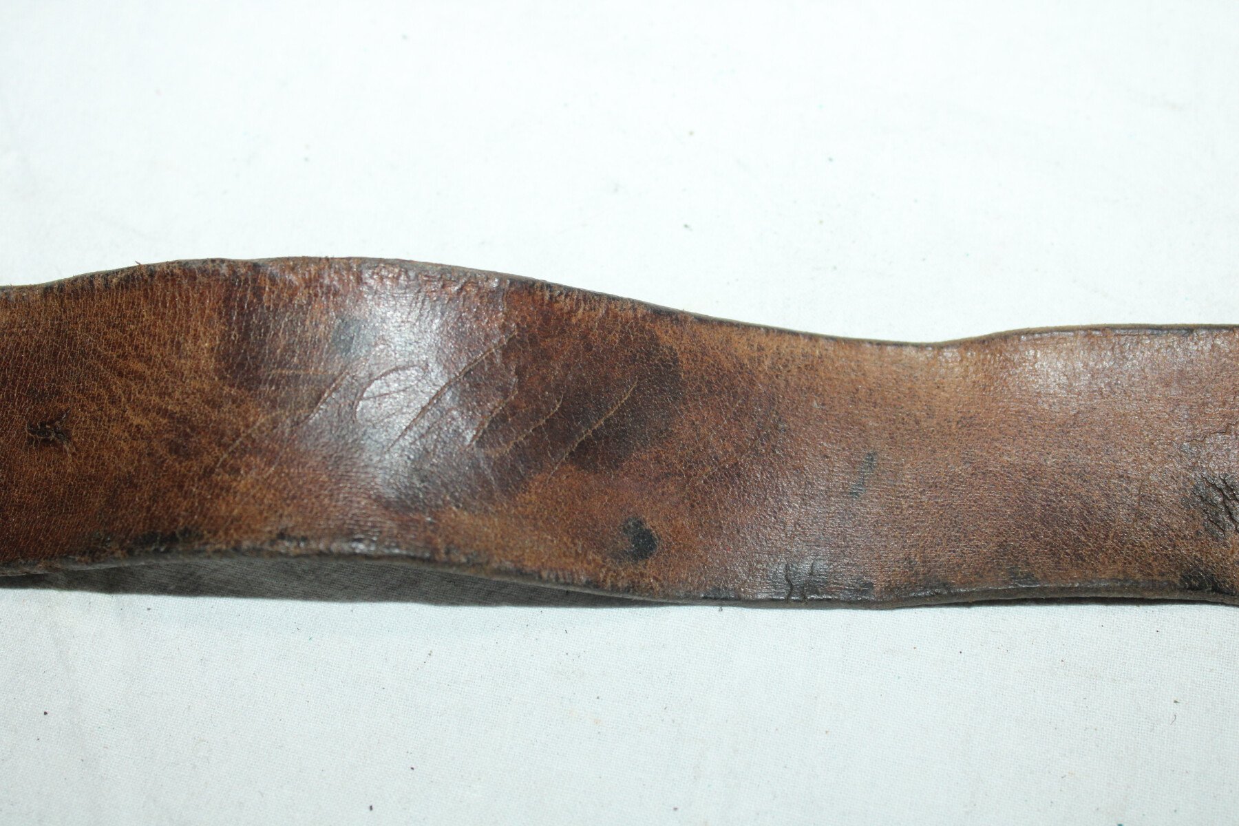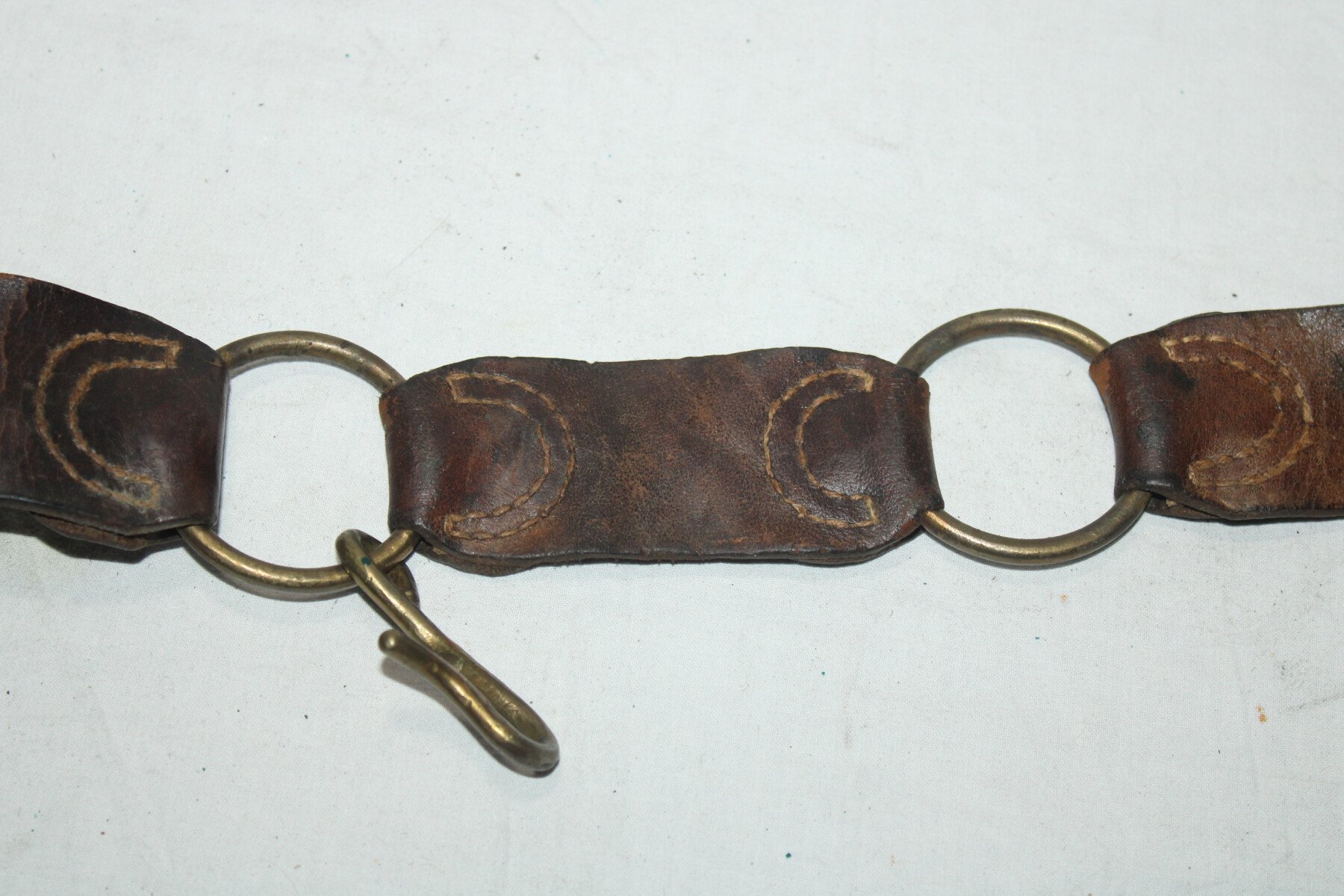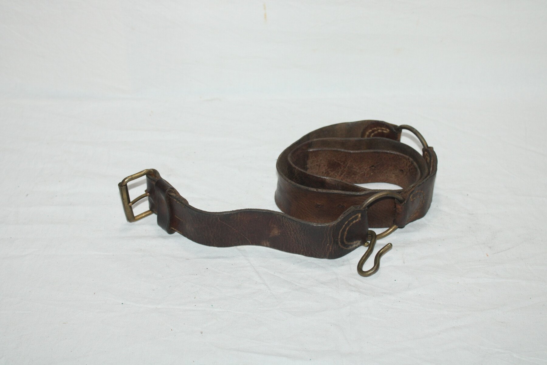 Ceinturon d'artilleur et du train des équipages modèle 1879 en cuir fauve. Cuir souple. Pas de tampon visible. Longueur 117cm.