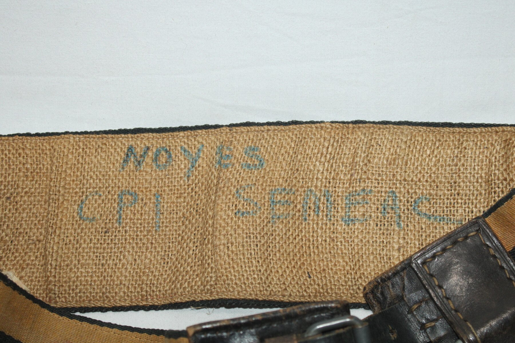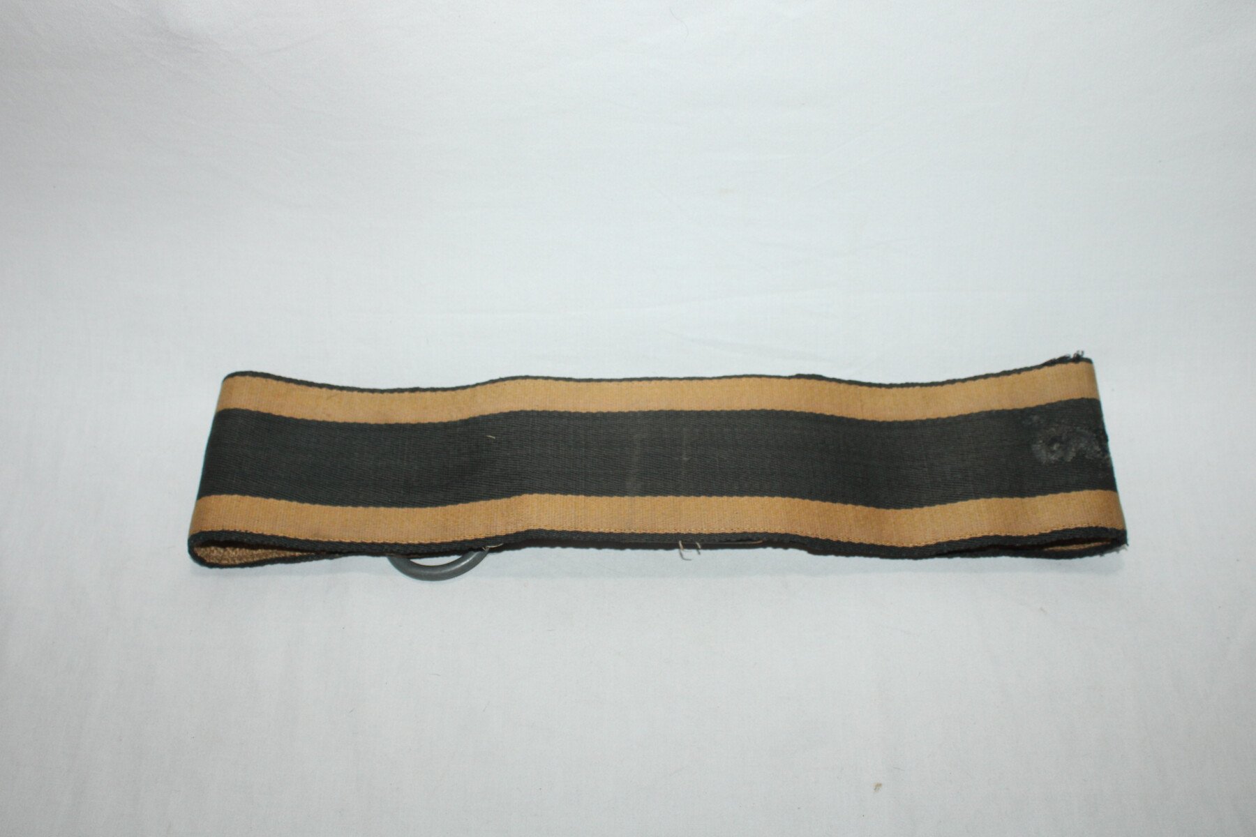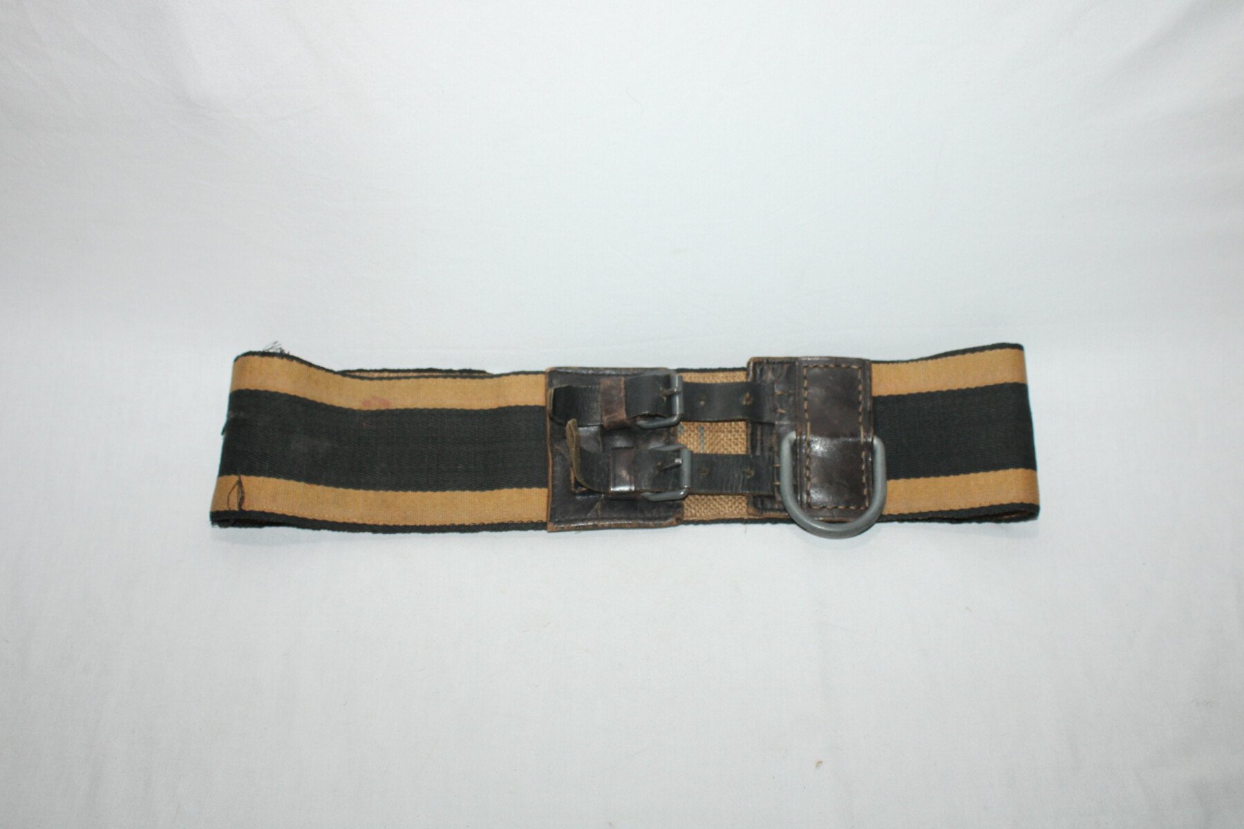 Ceinturon de feu des sapeurs pompiers en toile et cuir. Nominatif. Cuir bien souple. Longueur total 109cm.