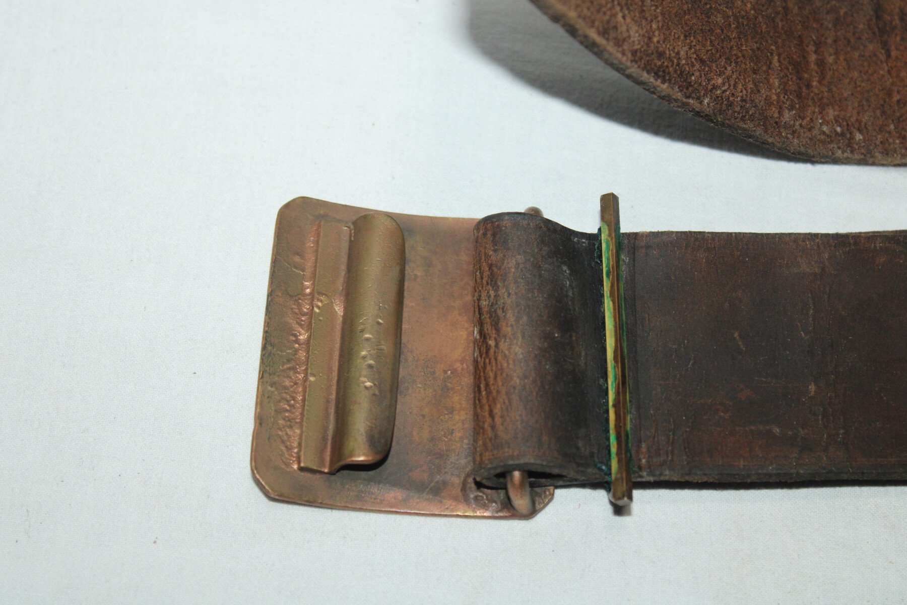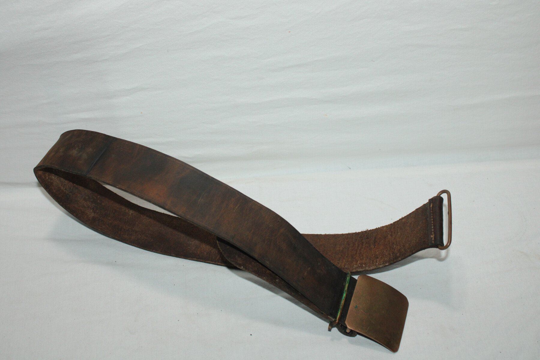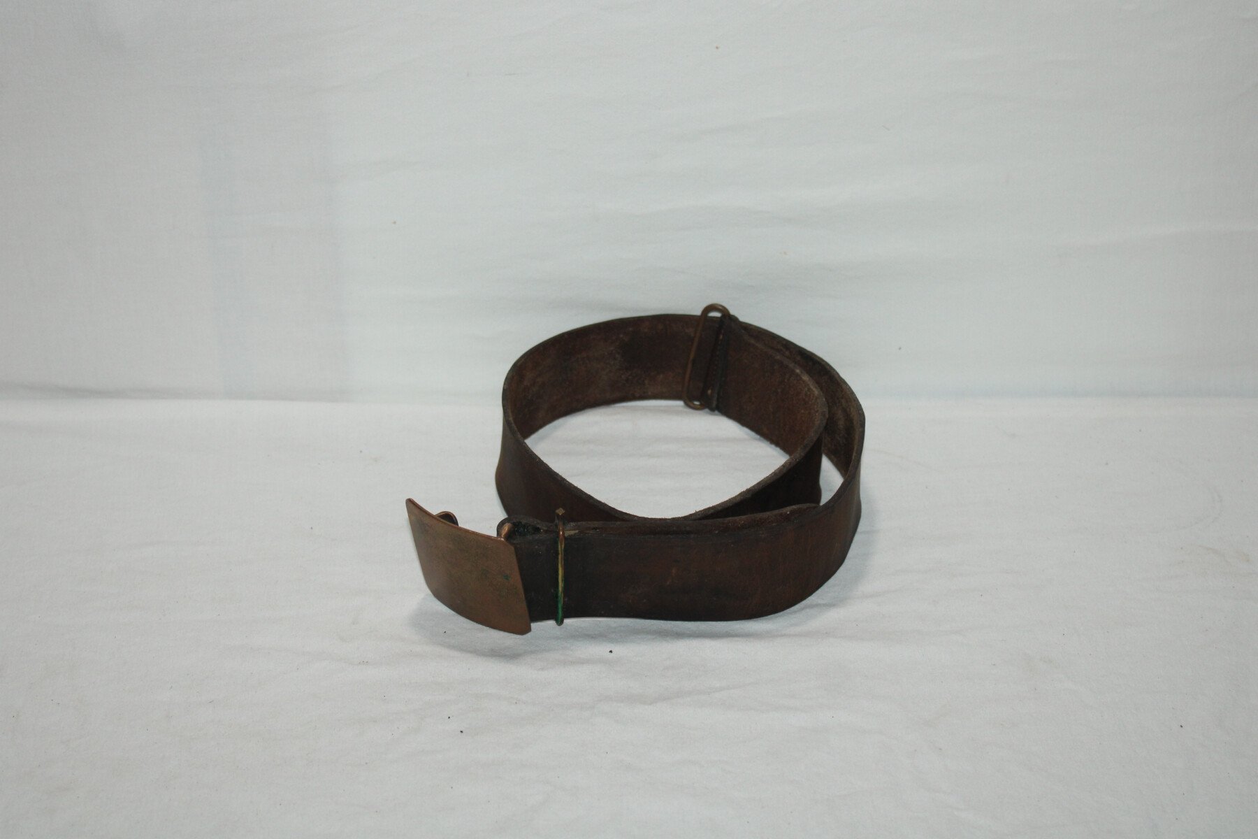 Ceinturon modèle 1845 en cuir fauve, longueur 100 cm, pas de tampon de date visible. Bon état général, légèrement abimé sur un coté. Cuir a nourrir.