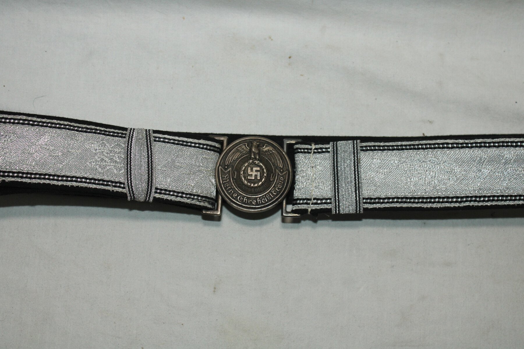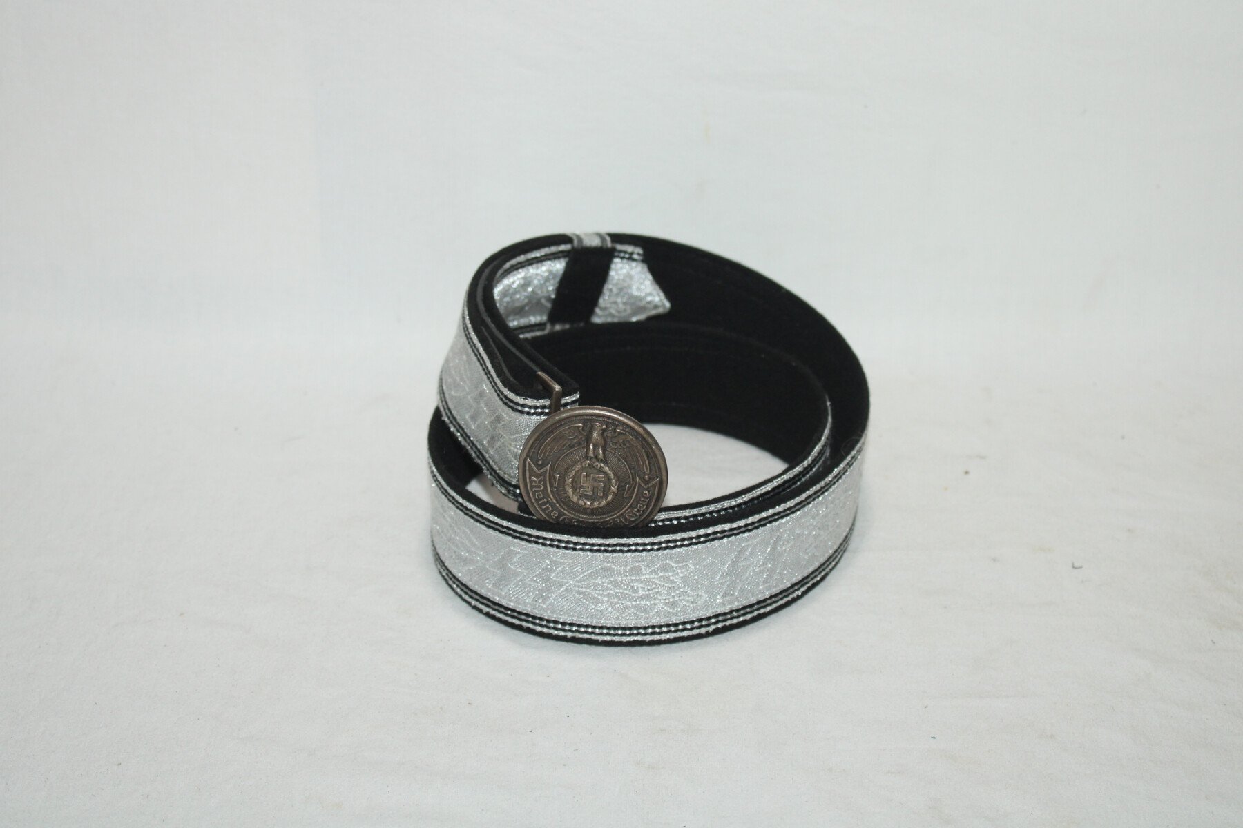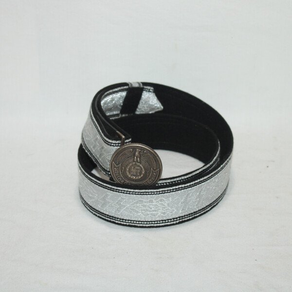 Ceinturon de cérémonie et de défilé pour officiers de la Waffen-SS en toile et cuir. 110cm de long.