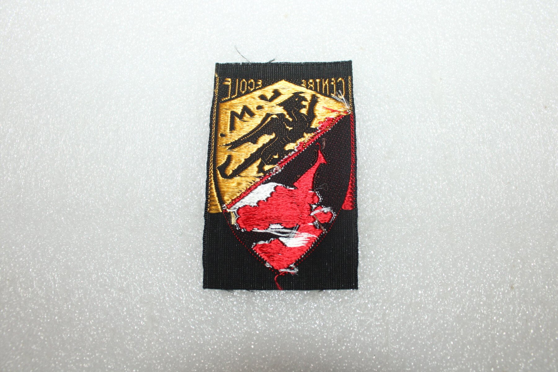 Insigne du centre Ecole de l'organisation Jeunesse et montagne. Fabrication tissés.Jeunesse et montagne (JM) est une organisation créée en août 1940, après la défaite, par l'Armée de l'air...