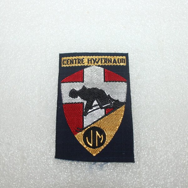 Insigne du centre Hyvernaud de l'organisation Jeunesse et montagne. Fabrication tissés.Jeunesse et montagne (JM) est une organisation créée en août 1940, après la défaite, par l'Armée de l'air...