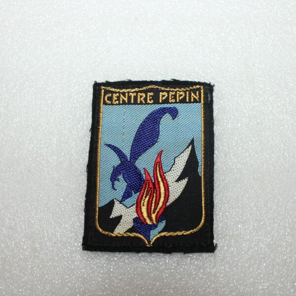 Insigne du Commissariat général centre Pépin de l'organisation Jeunesse et montagne. Fabrication tissés, monté sur drap noir.