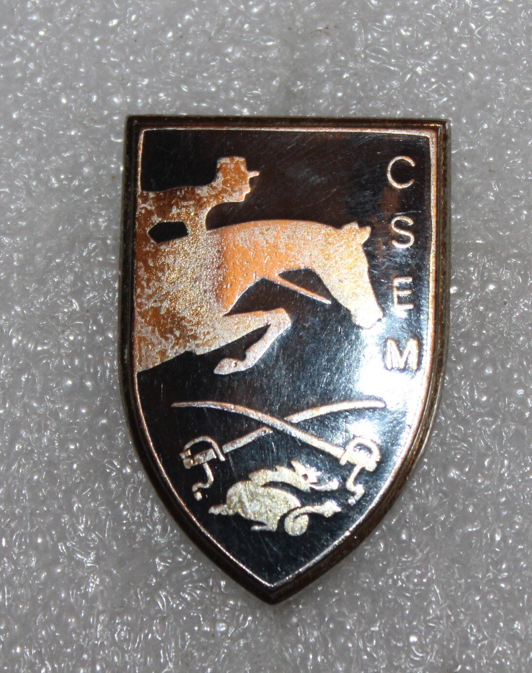 Insigne du Centre Sportif d’Équitation Militaire. Fabrication Drago. G. 2422.