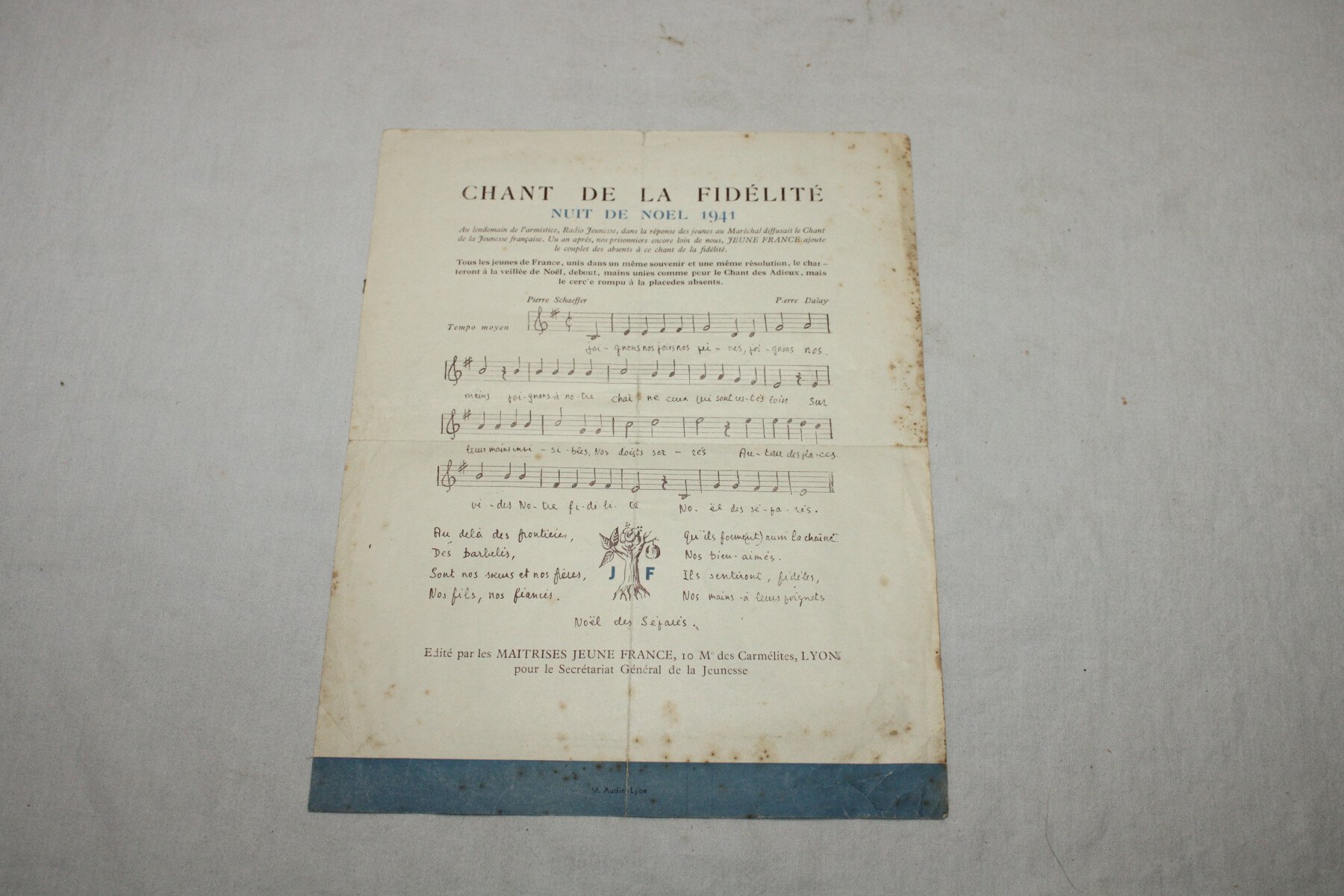 Feuillet de chant de la Fidélité, nuit de Noel 1941.
