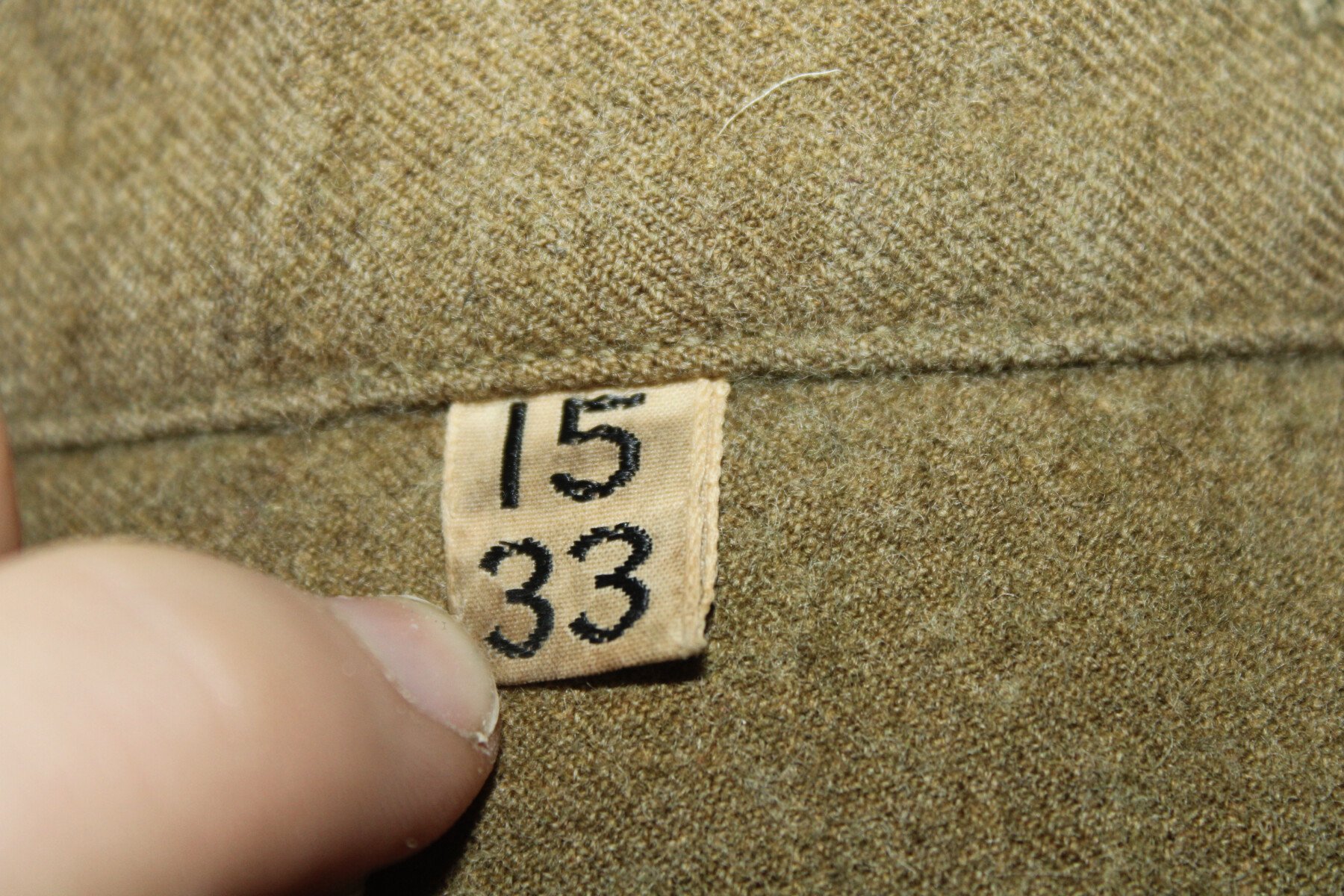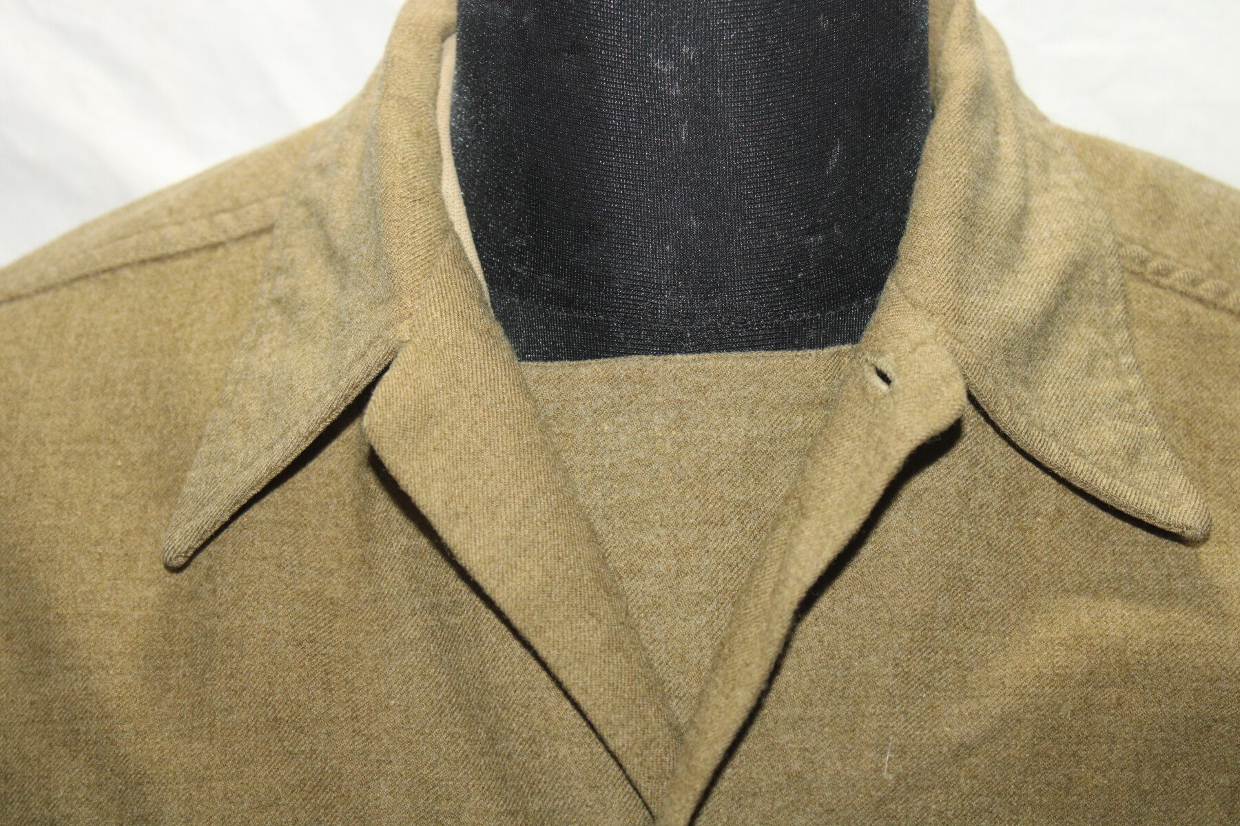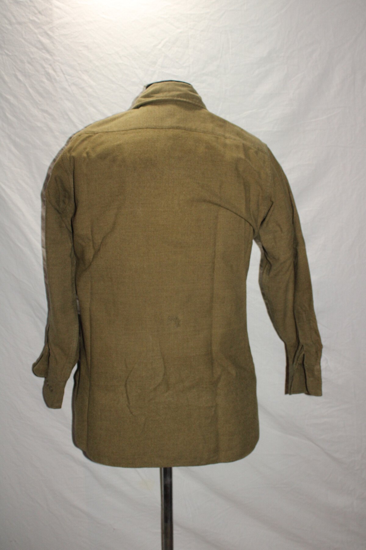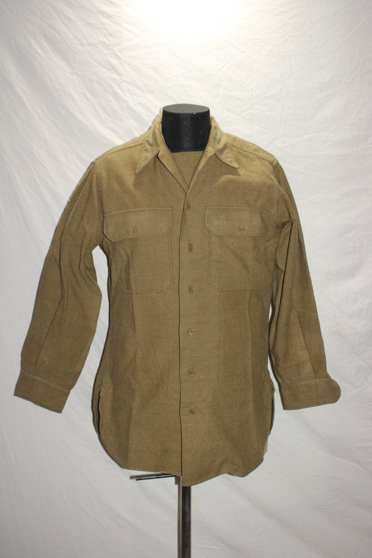 Chemise moutarde en flanelle. taille 15-33, rabat anti-Gaz présent, bouton au col. Une réparation au dos et une sur le cotés. Taille à plat: largeur d'épaule=45 cm longueur de manche =57 cm.
