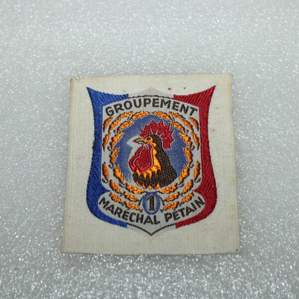Insigne du groupement N°1 groupe de direction (blanc) des chantiers de jeunesses Françaises. Fabrication tissés.L'organisation des Chantiers de la jeunesse française (CJF), souvent appelés...