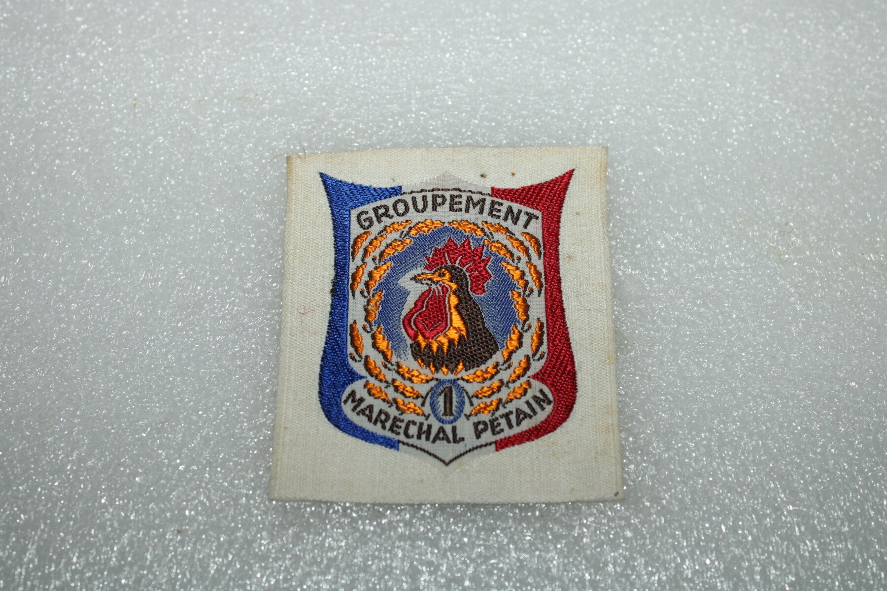 Insigne du groupement N°1 groupe de direction (blanc) des chantiers de jeunesses Françaises. Fabrication tissés.