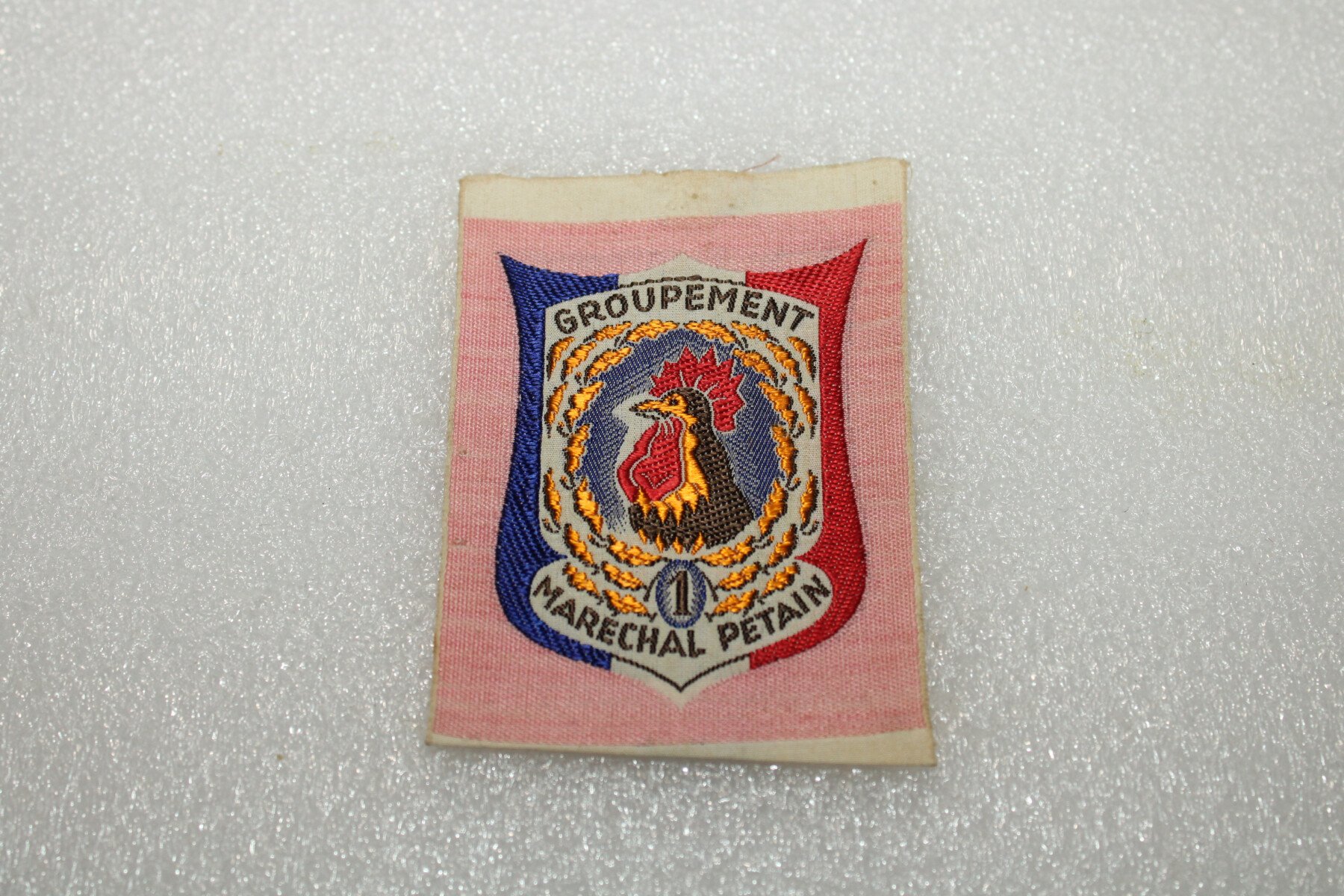Insigne du groupement N°1 groupe N°10 (rose) des chantiers de jeunesses Françaises. Fabrication tissés.
