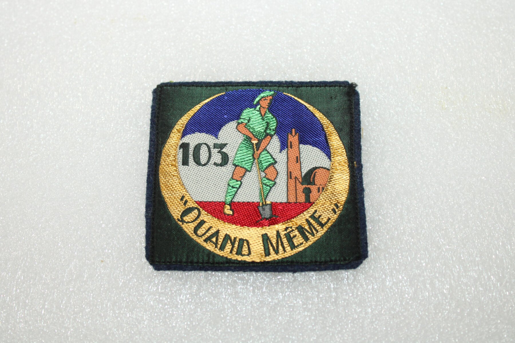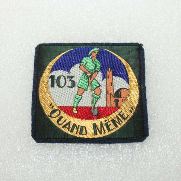 Insigne du groupement N°103 des chantiers de jeunesses Françaises. Fabrication tissés monté sur drap.L'organisation des Chantiers de la jeunesse française (CJF), souvent appelés chantiers de...