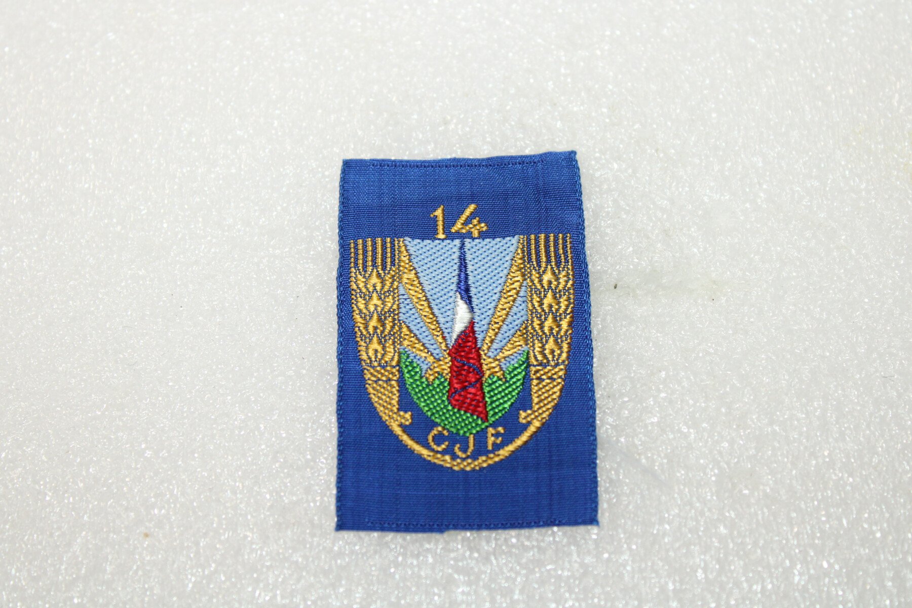 Insigne de béret du groupement N°14 des chantiers de jeunesses Françaises. Fabrication tissés.L'organisation des Chantiers de la jeunesse française (CJF), souvent appelés chantiers de jeunesse,...