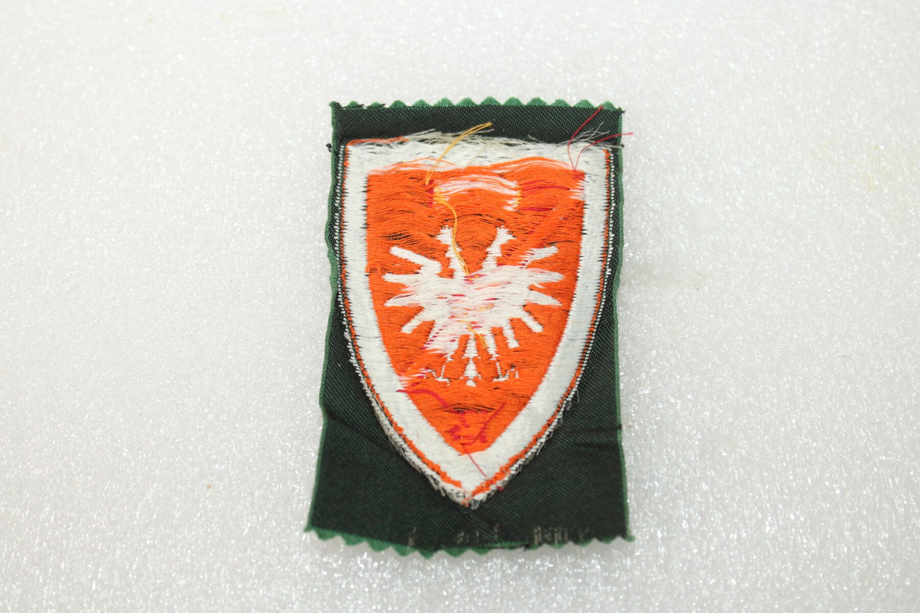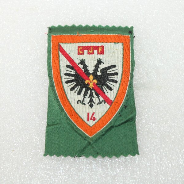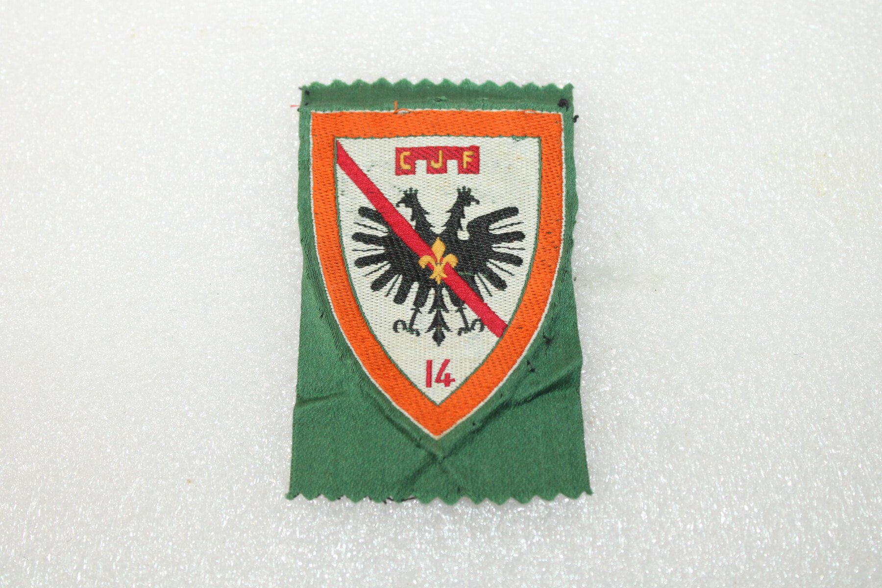 Insigne type 2 du groupement N°14 groupe N°5 (orange) des chantiers de jeunesses Françaises. Fabrication tissés. Démonté d'un uniforme.