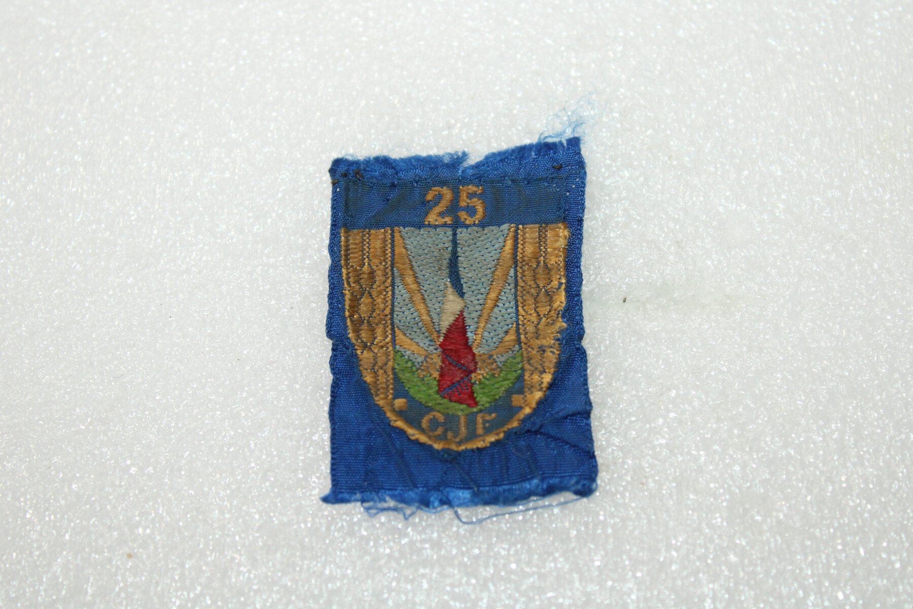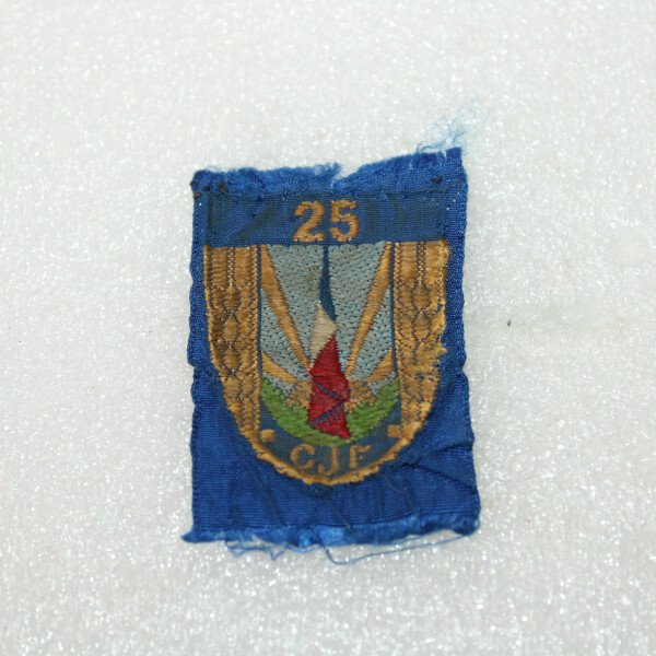 Insigne de béret du groupement N°25 des chantiers de jeunesses Françaises. Fabrication tissés. Démonté d'un béret.L'organisation des Chantiers de la jeunesse française (CJF), souvent appelés...