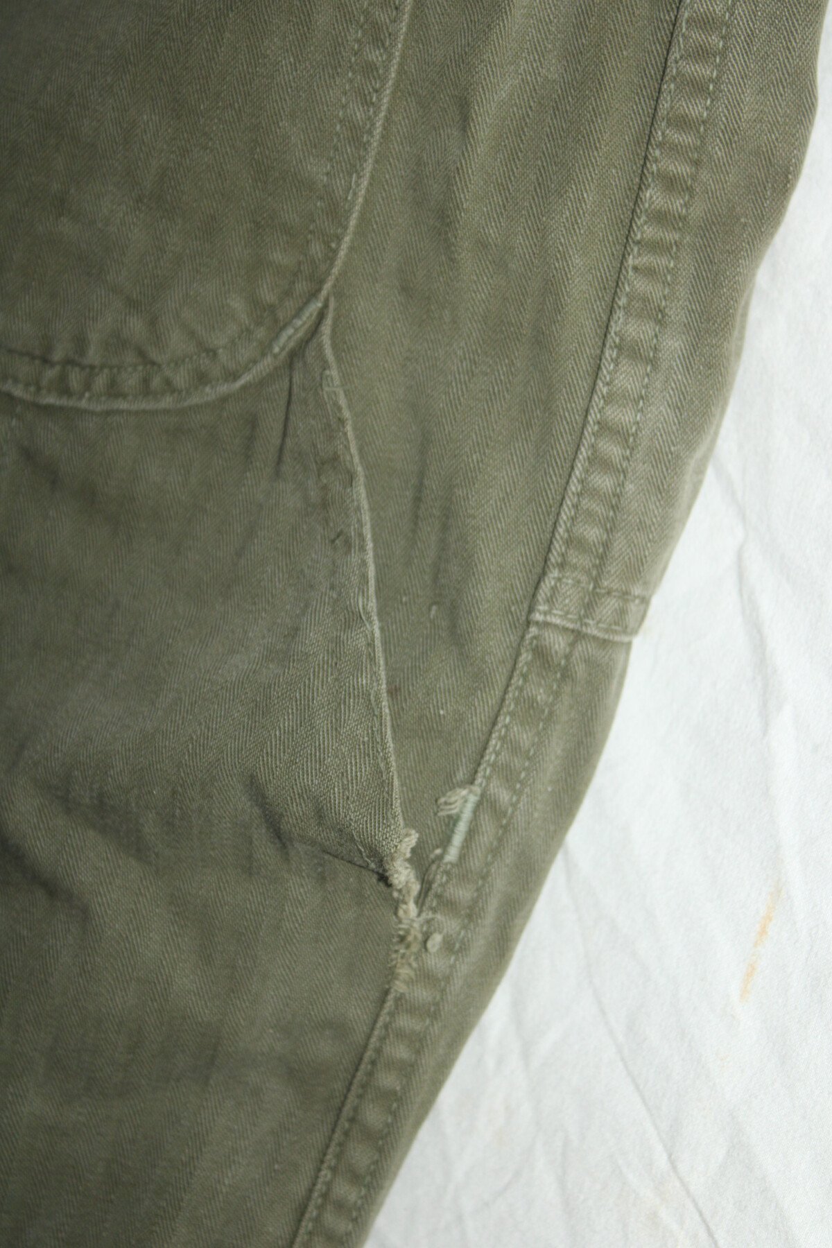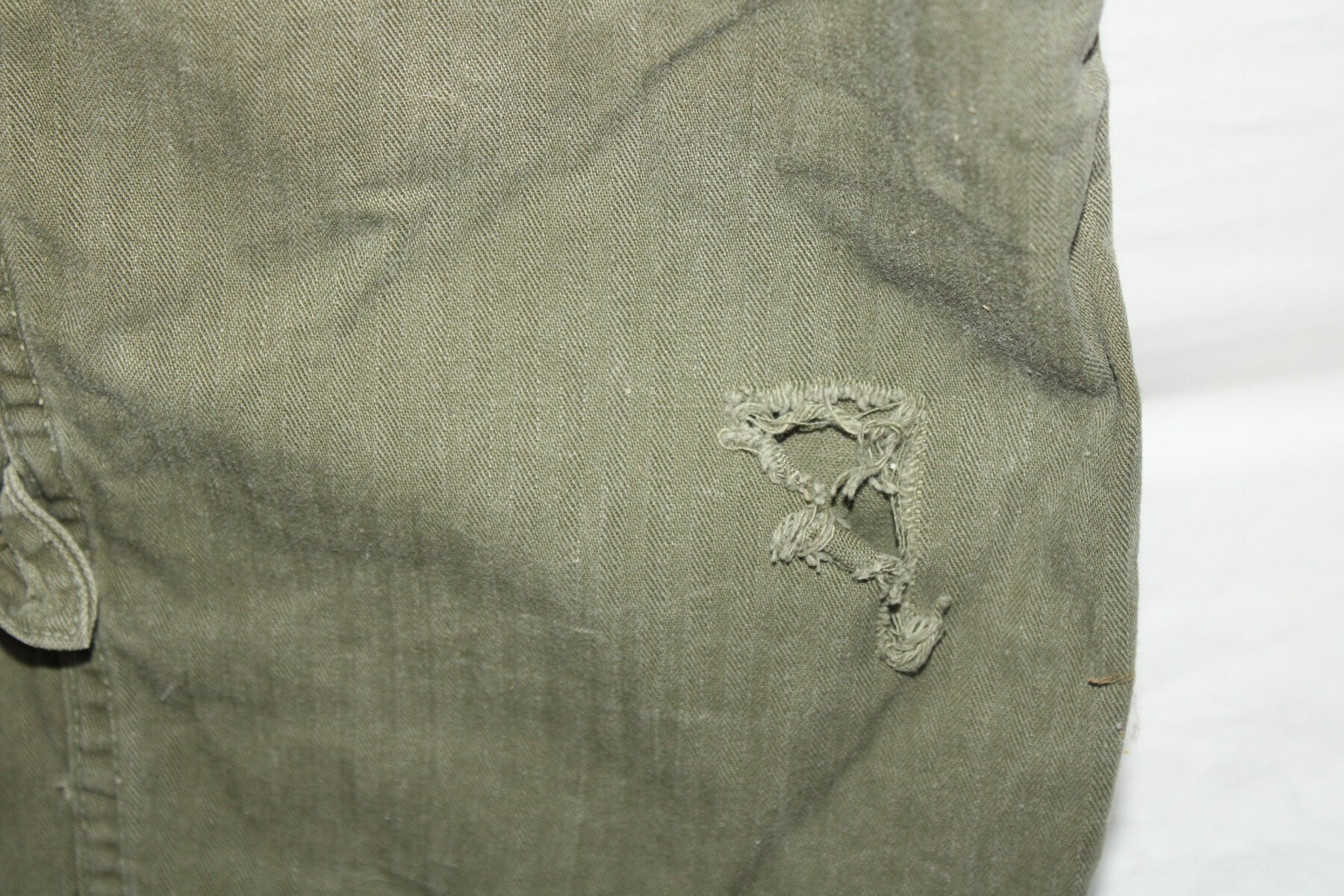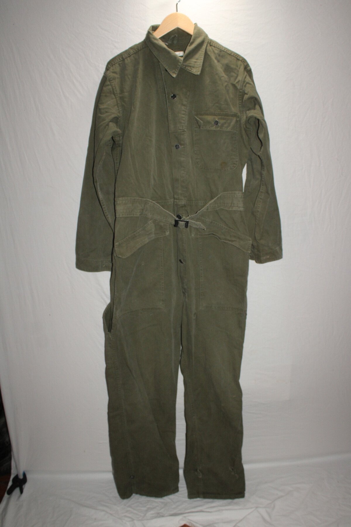 Combinaison en Toile Hbt 2e modèle. Taille 38L. Bon état général, quelques trous. Ceinture présente. Etiquette présente dans la poche. Un Laundry number y figure à l'intérieur. Provient de...