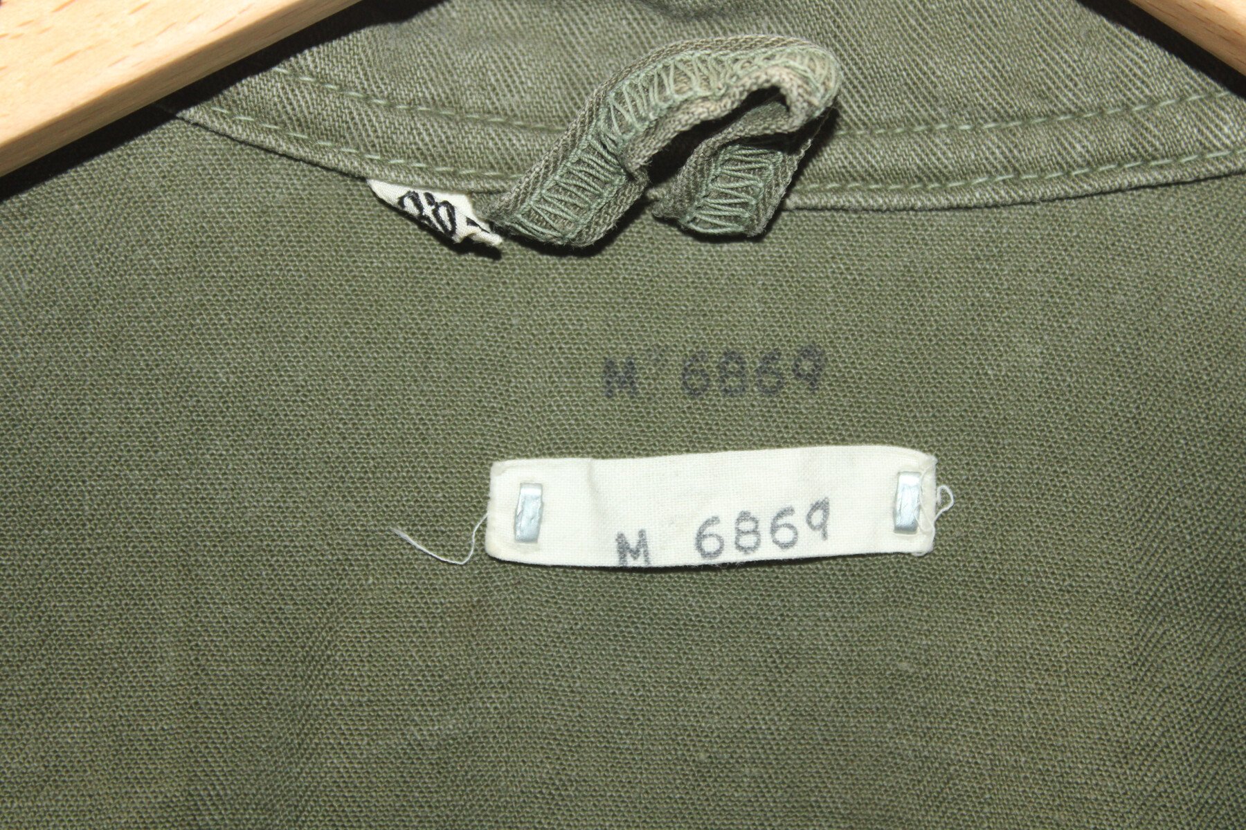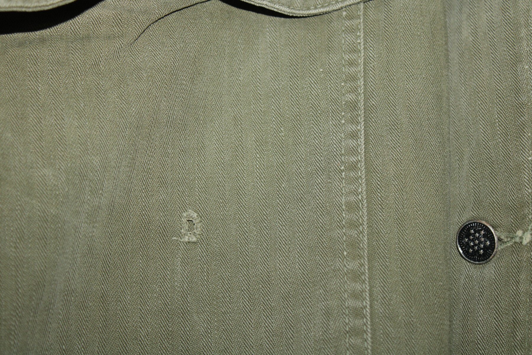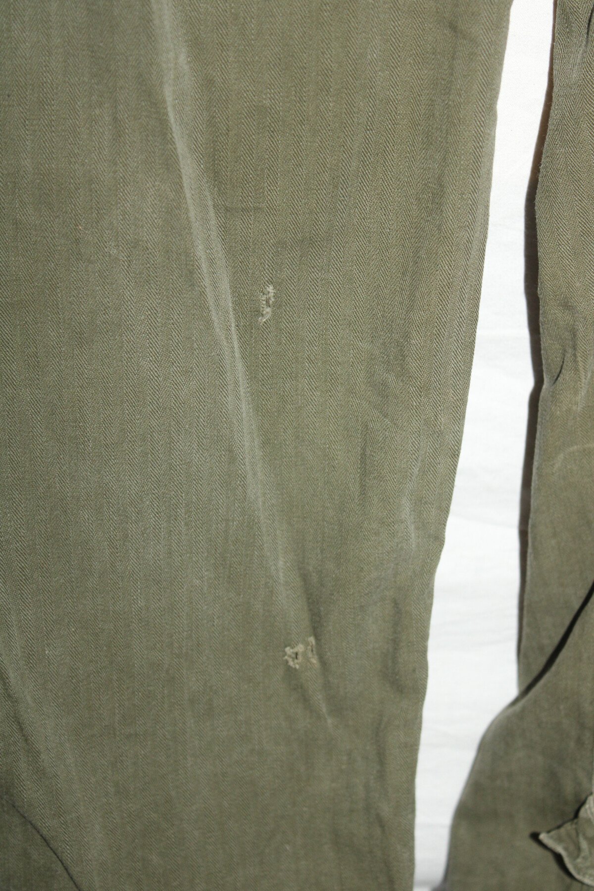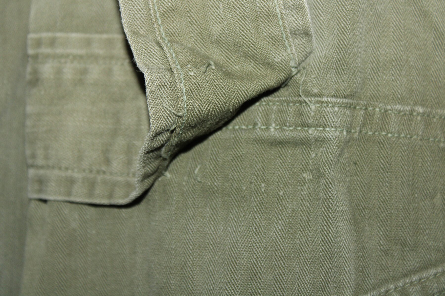 Combinaison en Toile Hbt 2e modèle. Taille 38L. Bon état général, quelques trous. Ceinture présente. Etiquette présente dans la poche. Un Laundry number y figure à l'intérieur. Provient de...