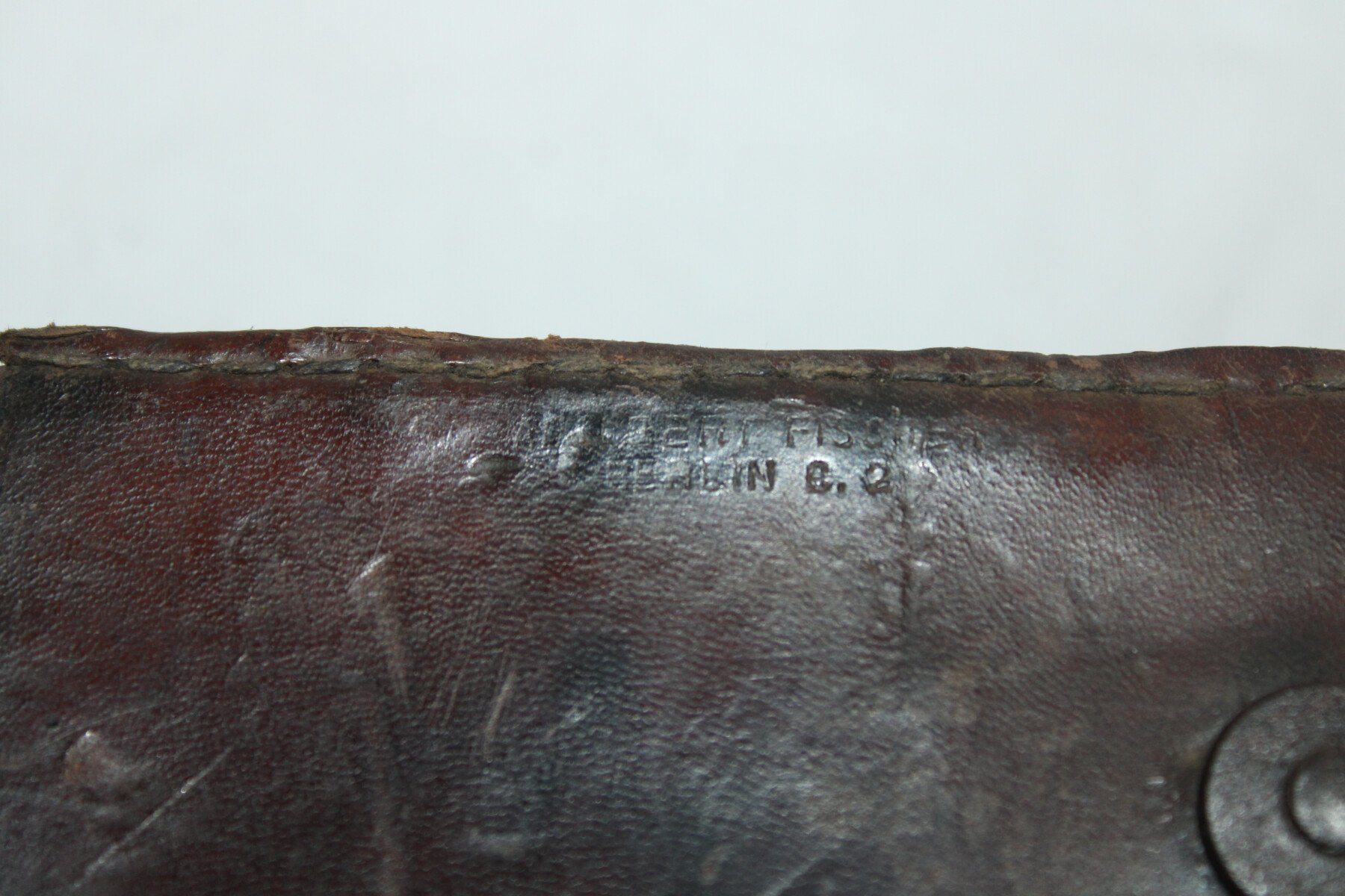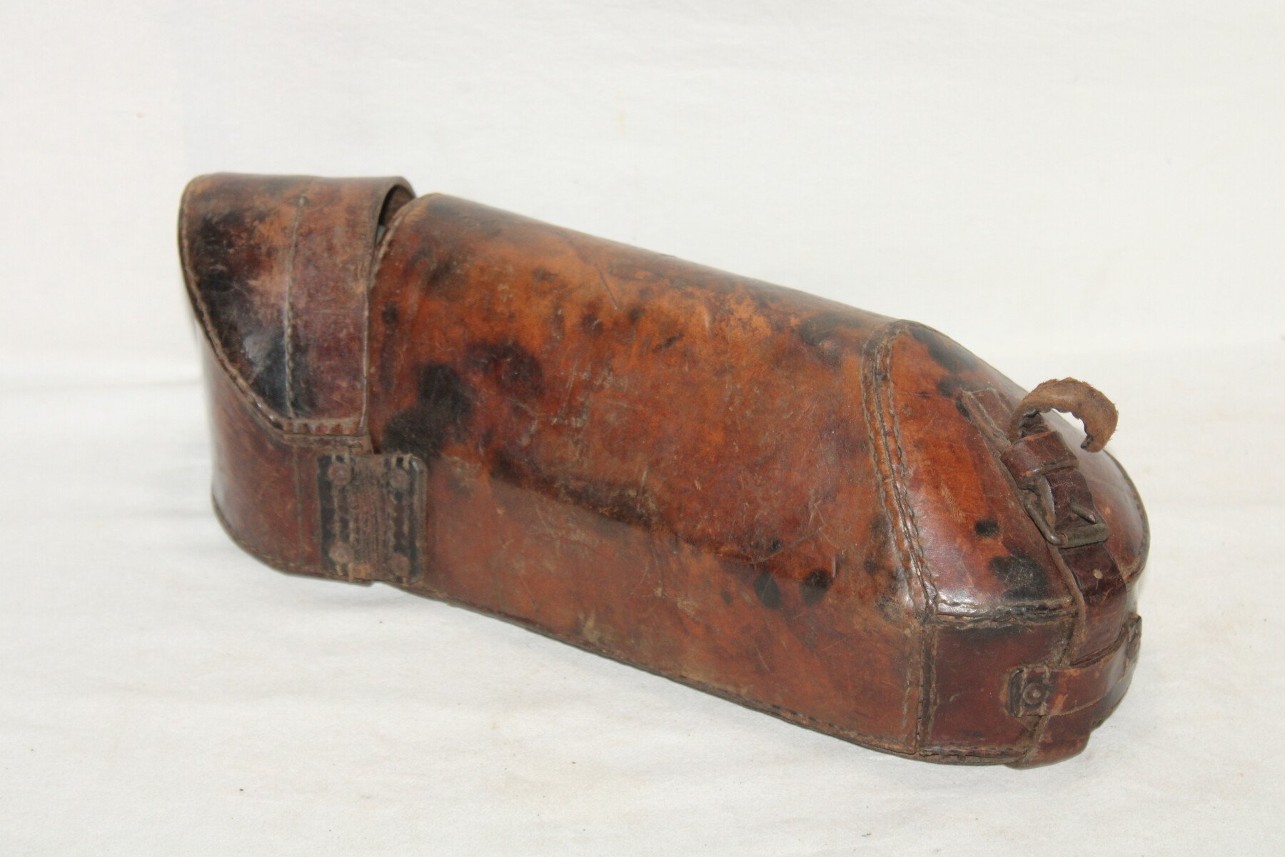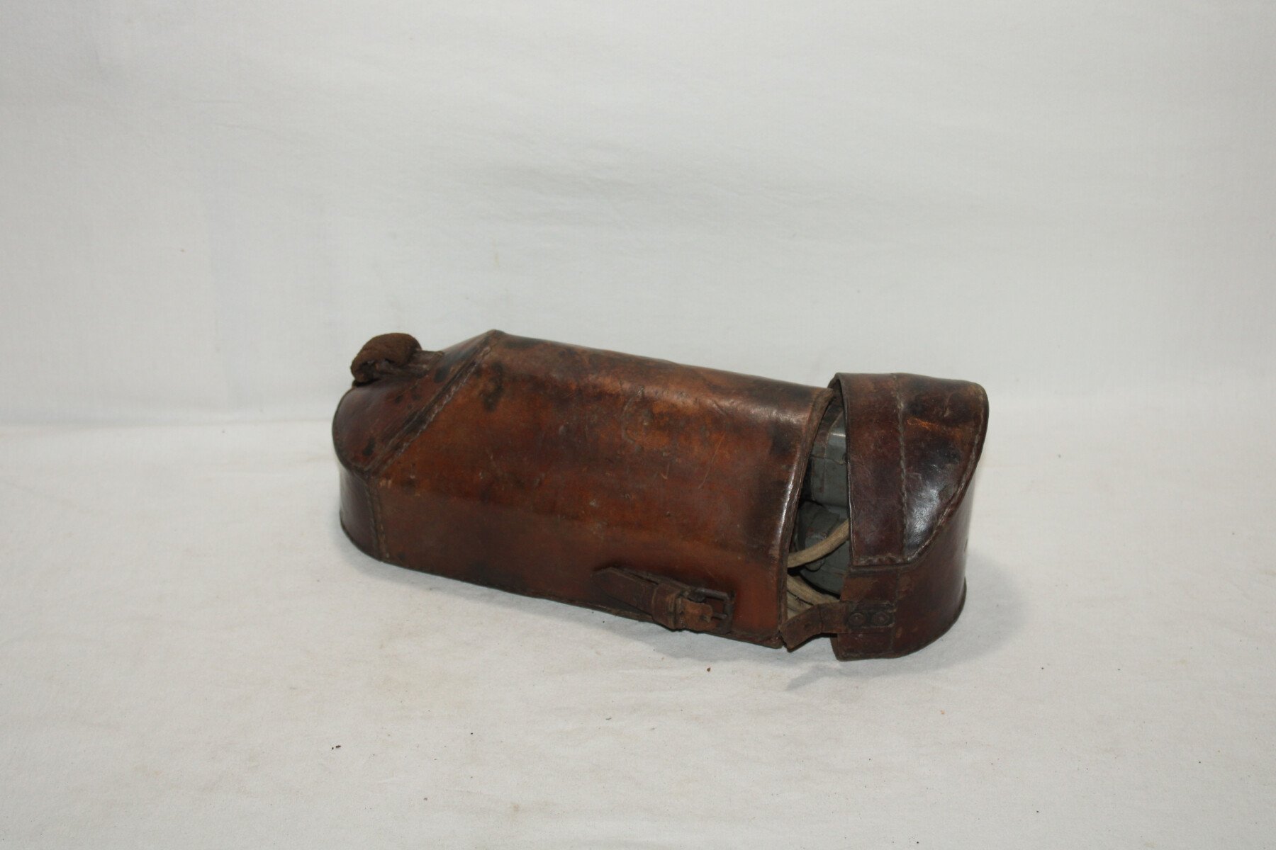 Combiné pour téléphone de campagne prussien dans son étui de transport. Peinture feldgrau présente, complet avec son câble à deux fiches et tout ses boutons. Etui en cuir, sanglon de fermeture cassé mais présent. Marquage dans le couvercle. Intérieur en partie abimée. Sangle absente. Bel ensemble.