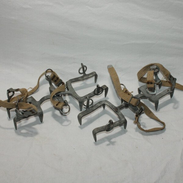 Paire de crampons de montagne. Fabrication Chamonix. Sangles présente.