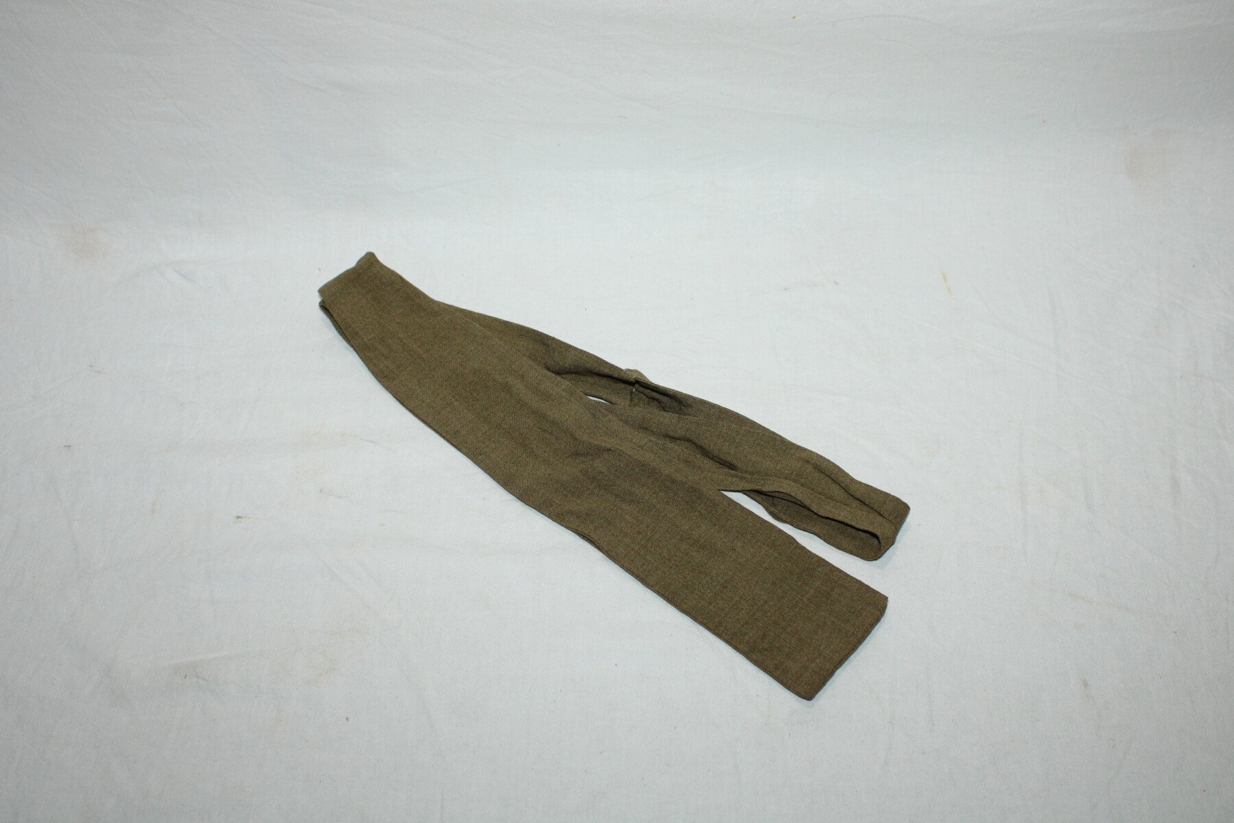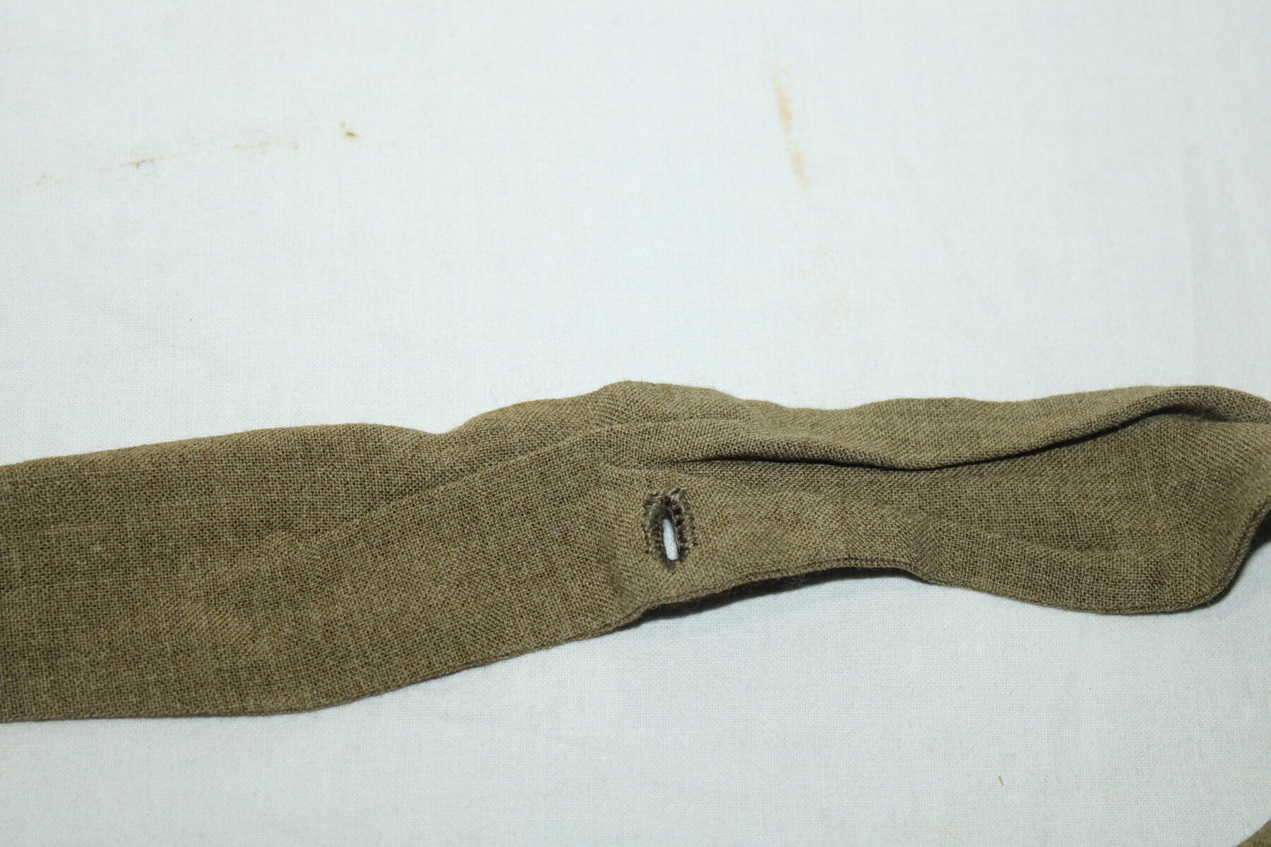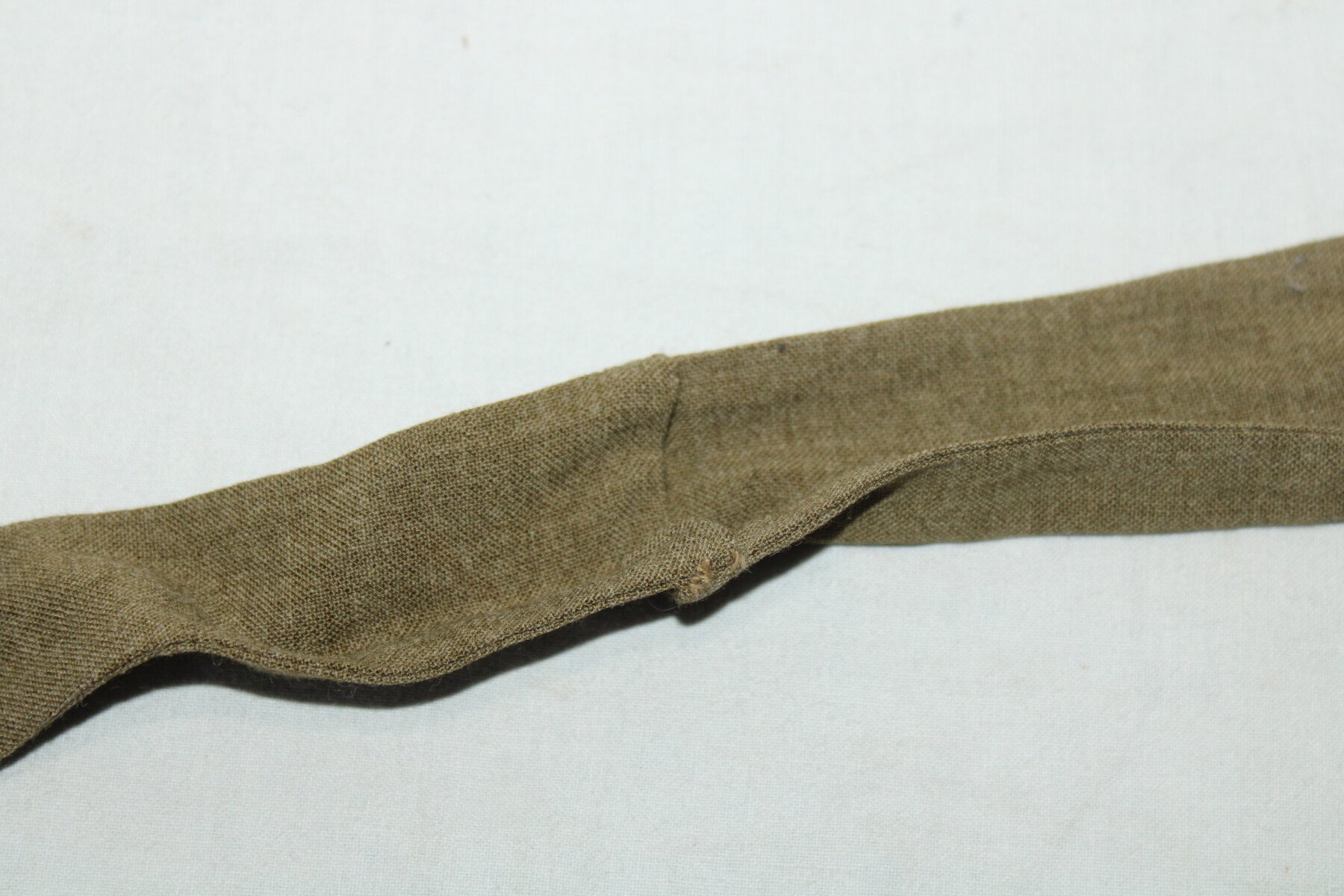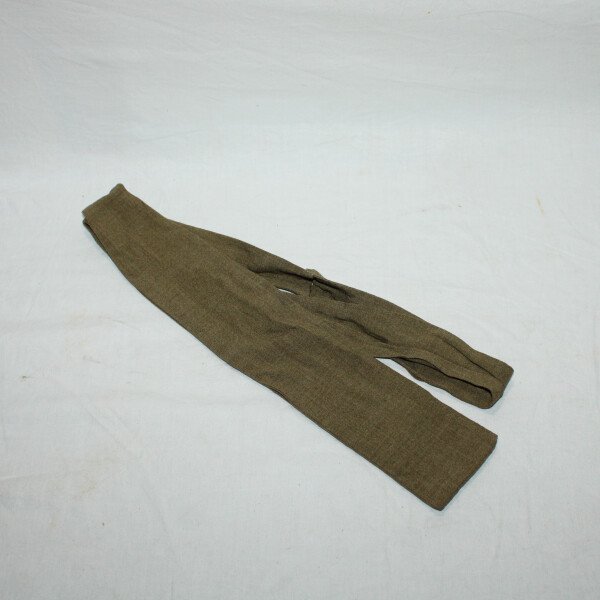 Cravate modèle 1935 à bord plat pour sous-officier et officier en toile kaki, neuve de stock. Taille 150cm. Emplacement pour le bouton de col.