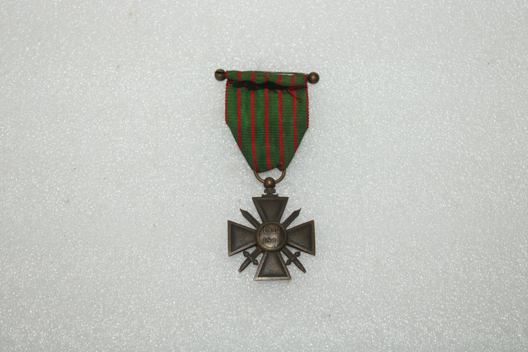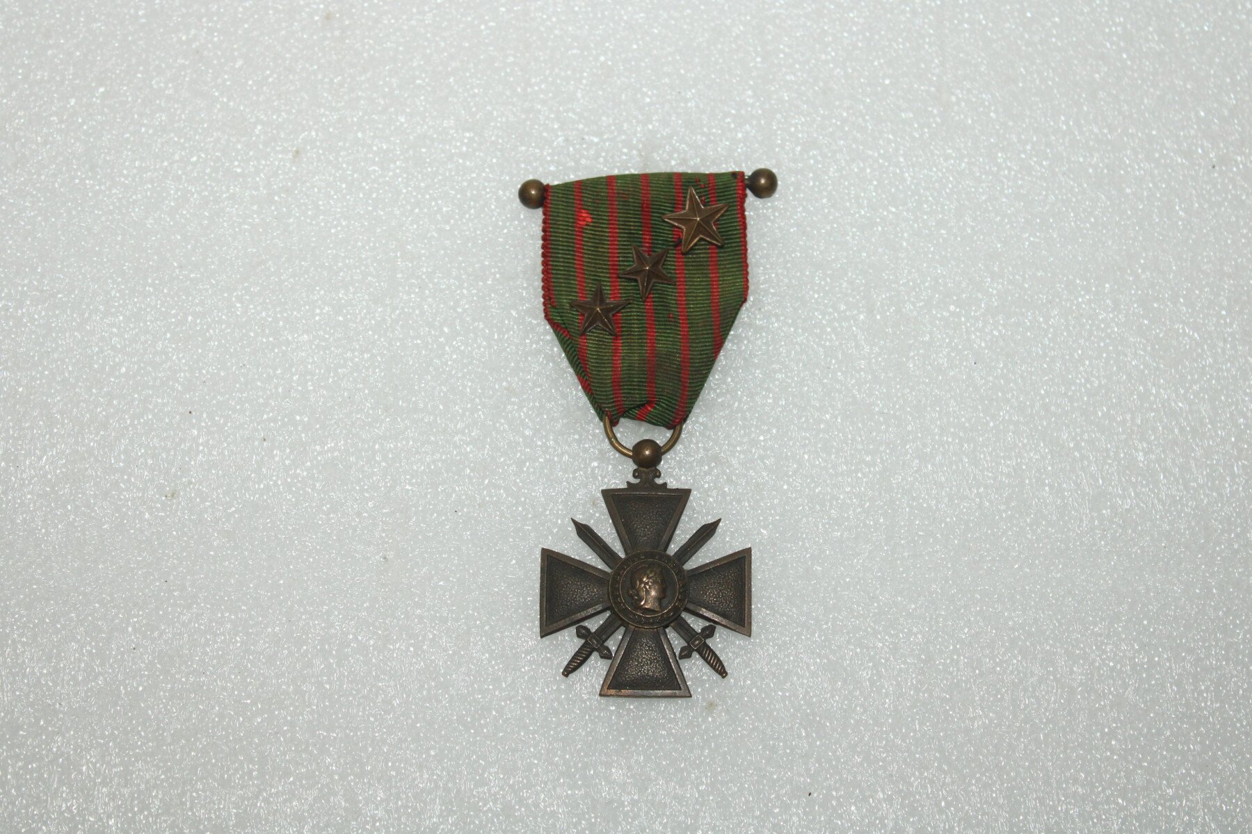 Croix de guerre marquée au revers 1914/1917 avec 3 étoiles, et sa barrette à boule à épingle.