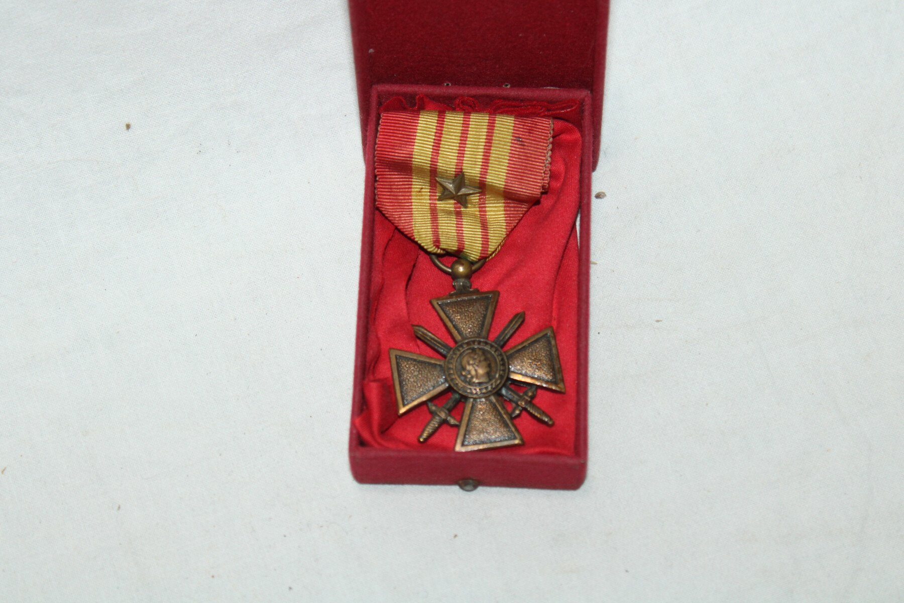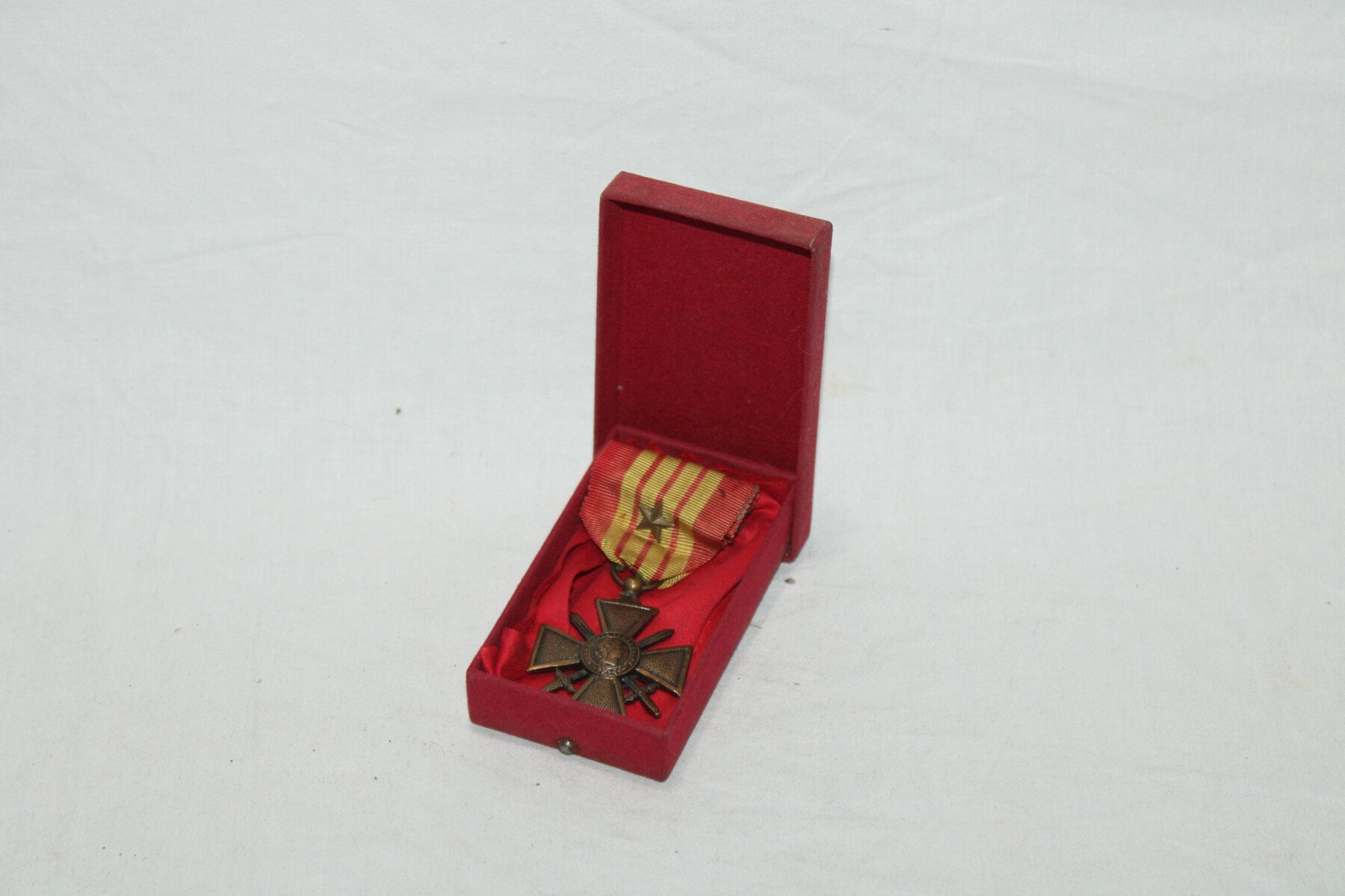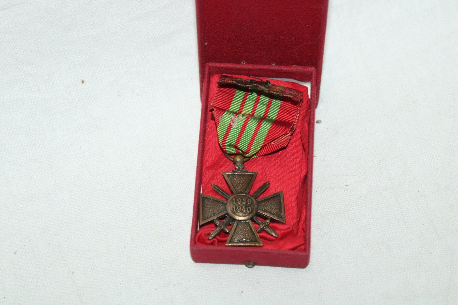 Médaille de la croix de guerre 1939/1940 avec une étoile. Ruban insolé. Dans une boite.