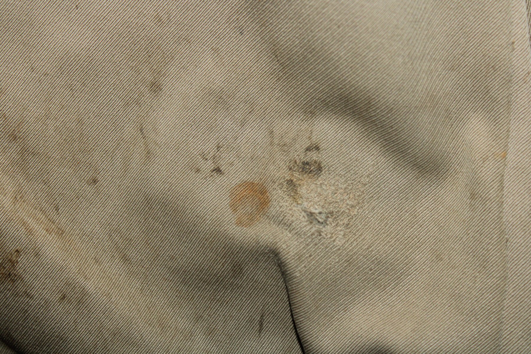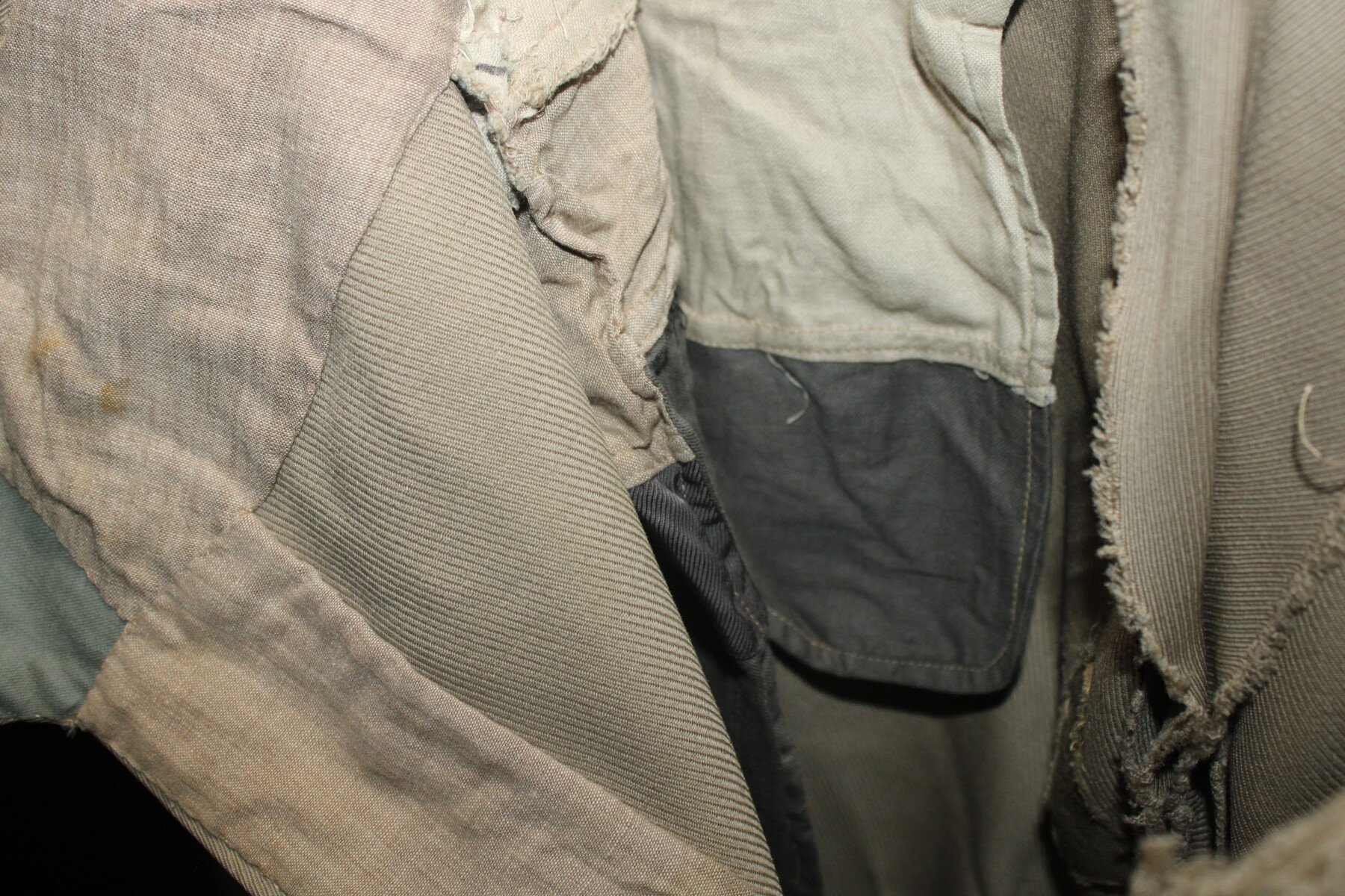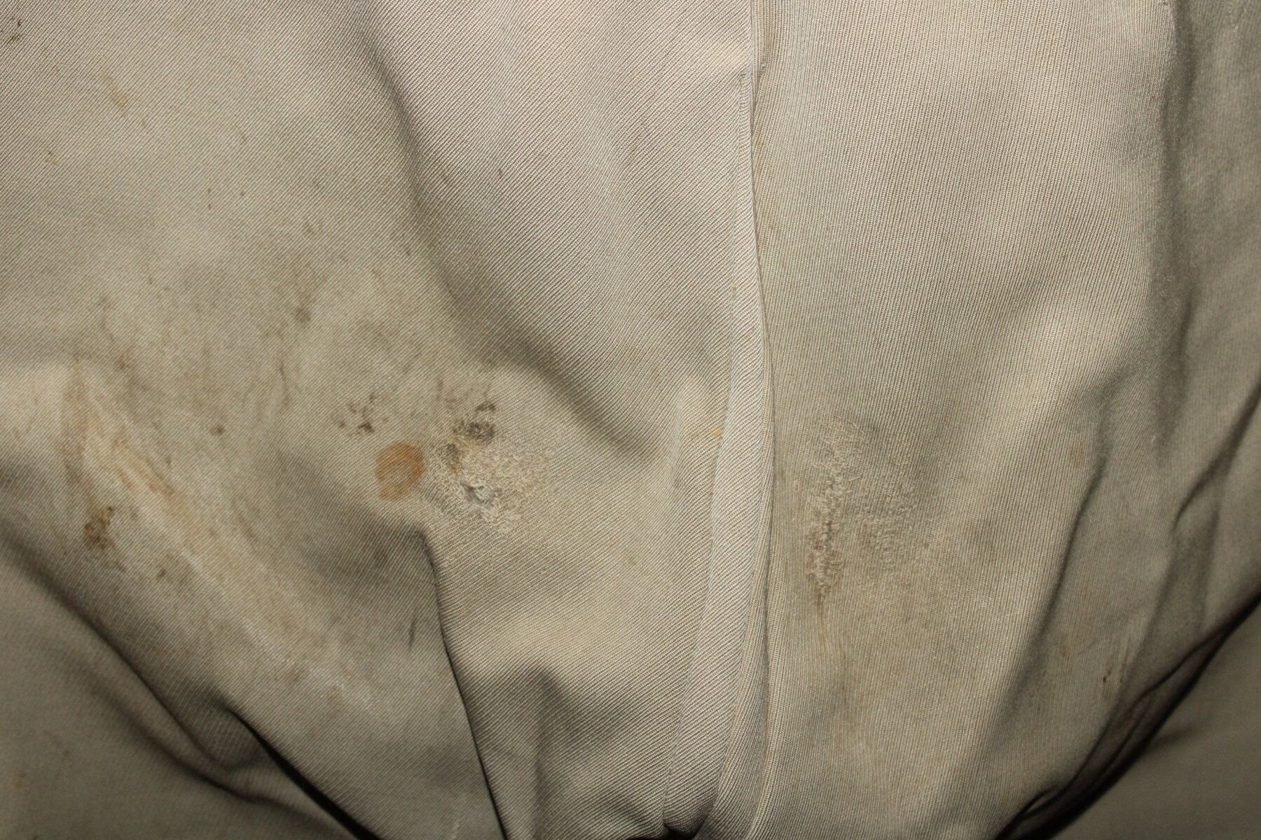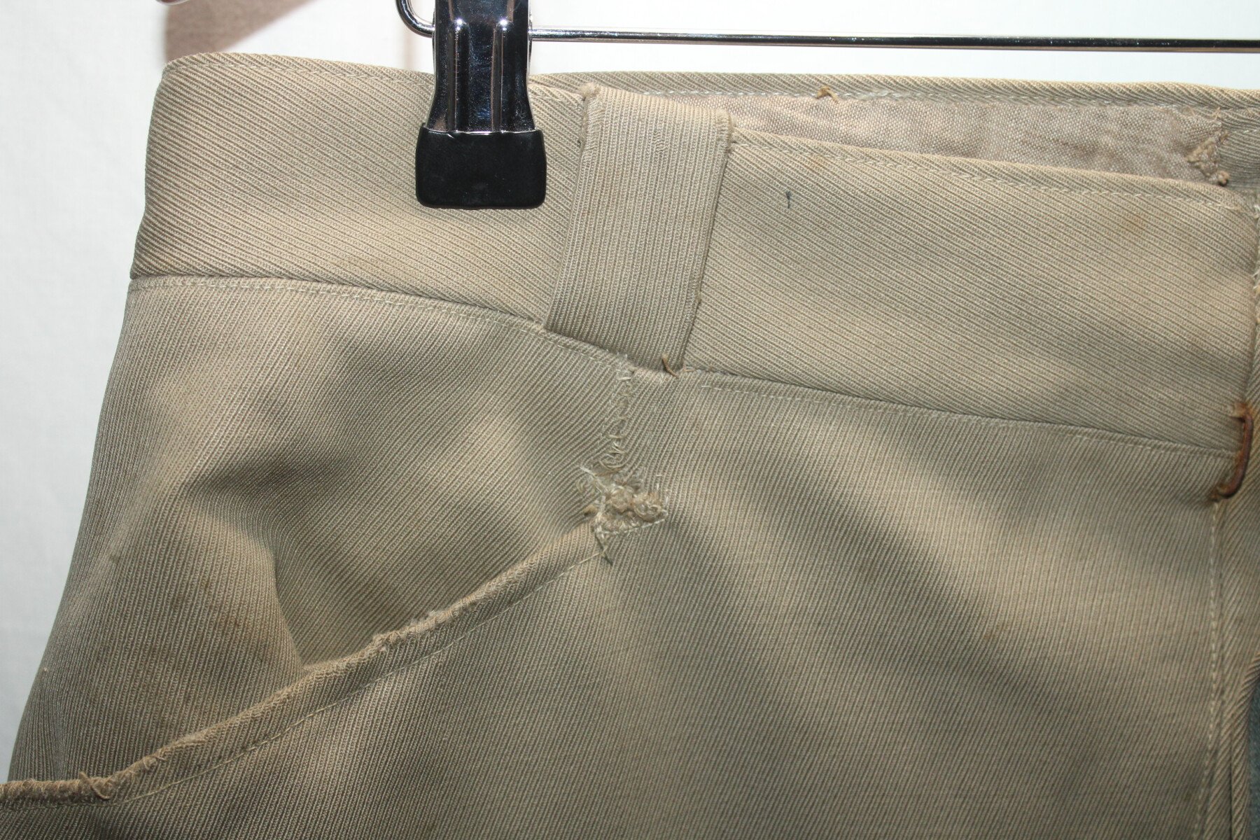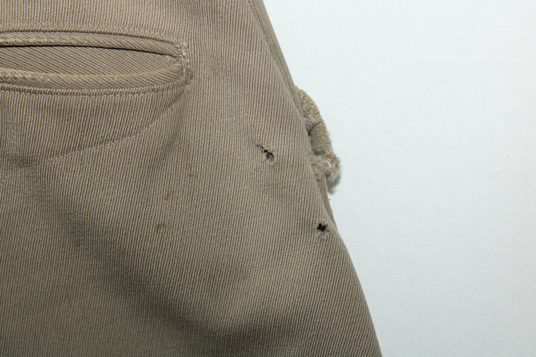 Pantalon-culotte d'officier en tissu mastic. Nombreux petits trous et accrocs, lacets présents. Tour de taille à plat 43cm, hauteur total 90cm.