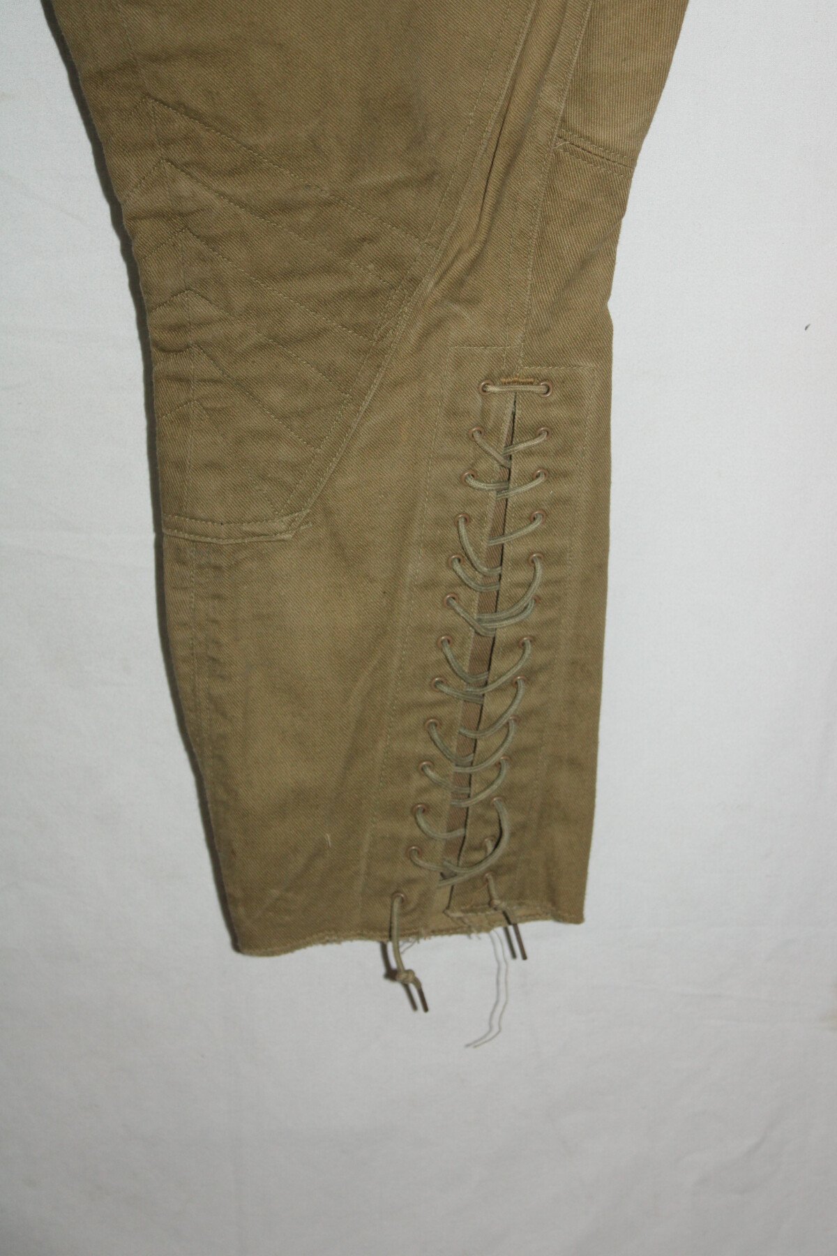 culotte troupe Américaine modèle 1912 en toile kaki clair. Passants toile de ceinturon. Boutons en fer "US Army" cousus d'origine. Bas des jambes à lacets. Lacets d'origines en coton. Quatre...