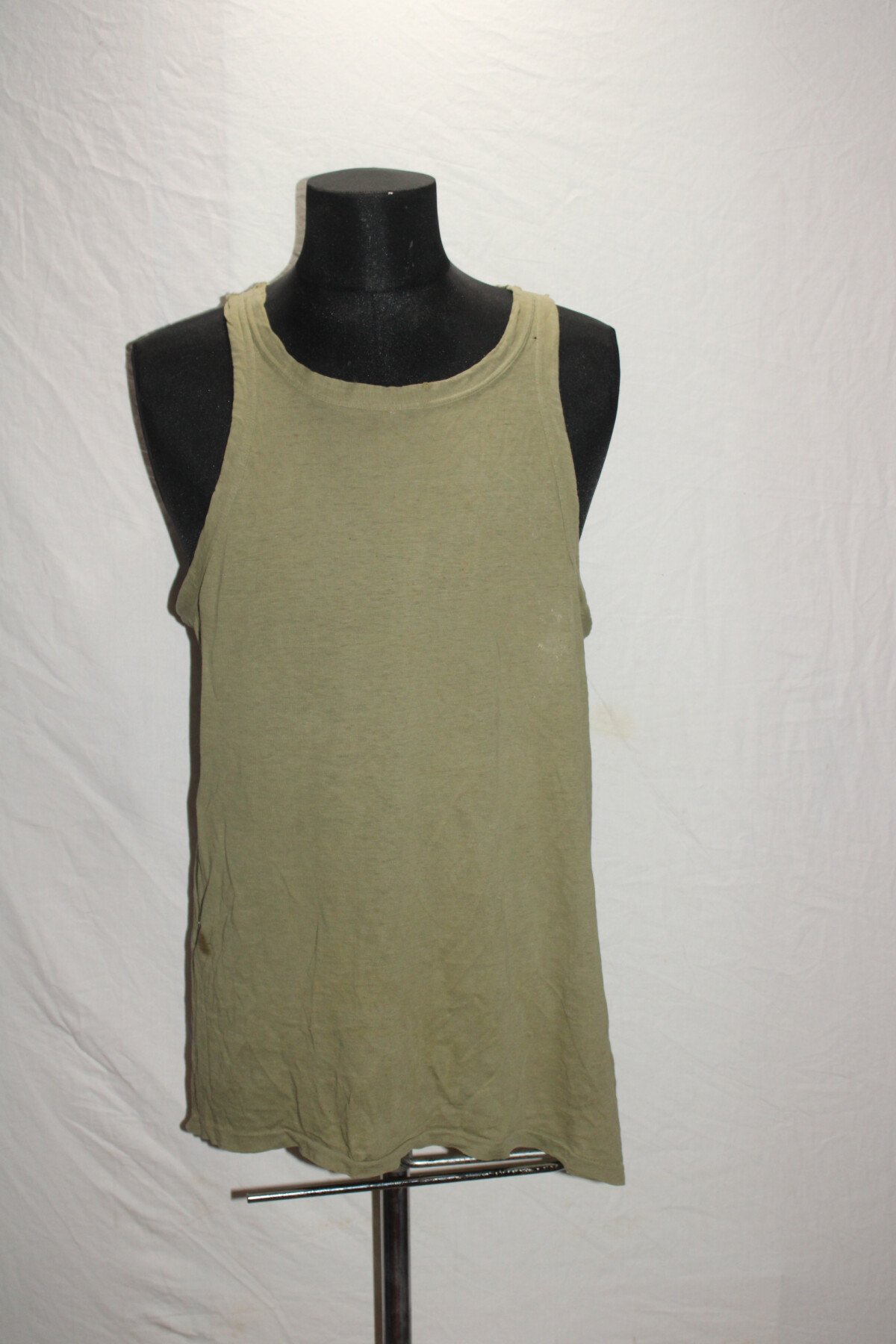 Maillot de corps été, undershirt cotton summer, marquage illisible. Quelque petit trou. Provient de camps cigarette en Seine-Maritime.