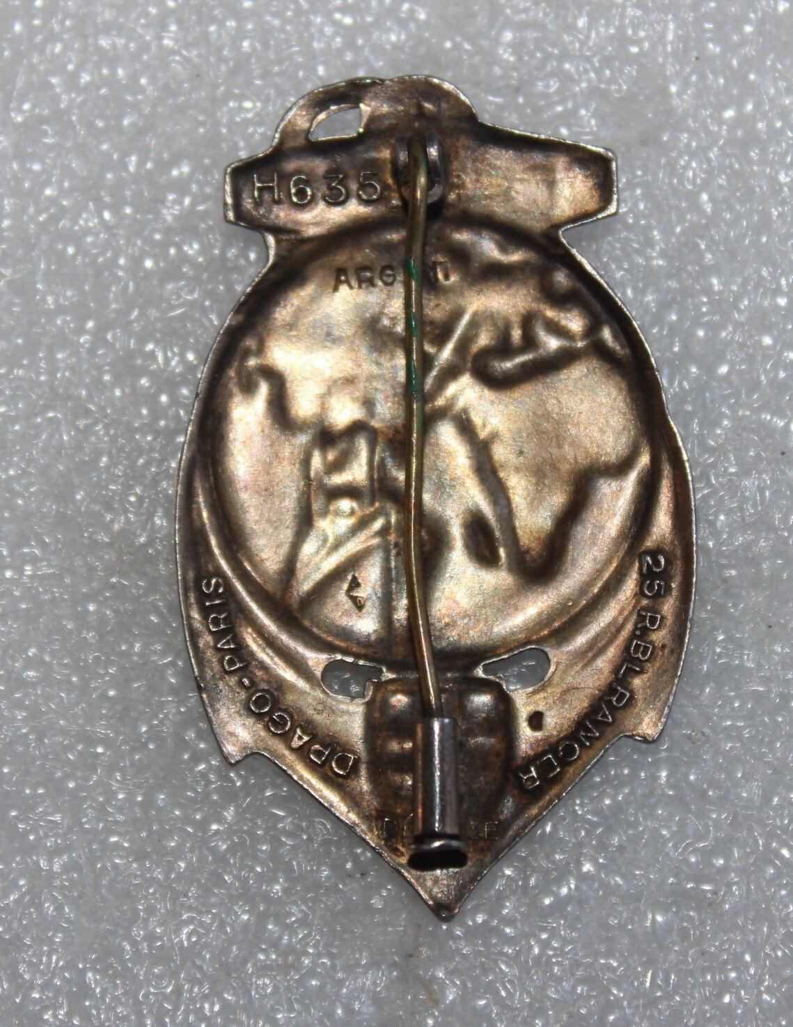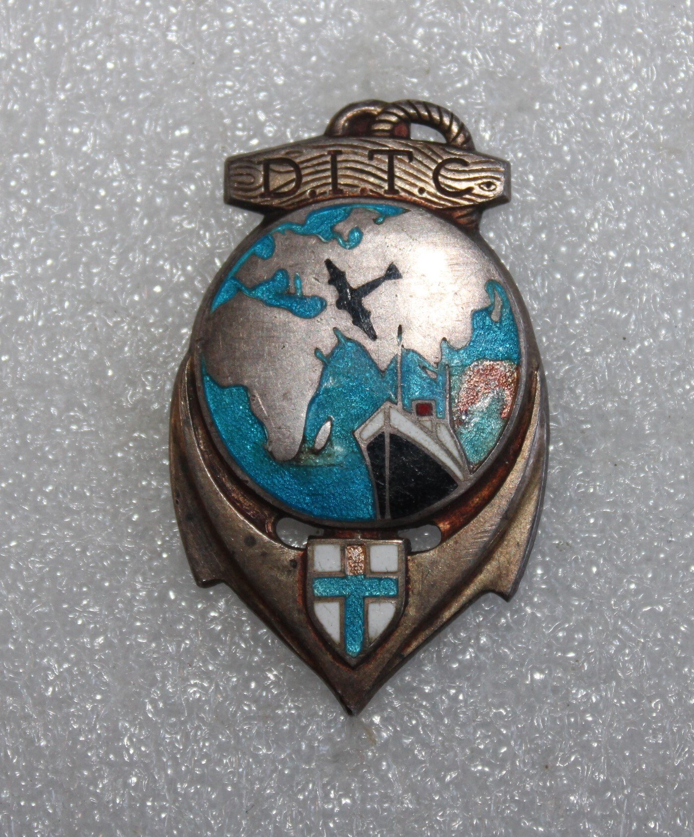 Insigne du Dépôt Isolés Troupes Coloniales, basé à Marseille, fabrication émaillée en argent de la maison Drago Paris 25 rue de Béranger. 2 légers éclats d'émails.