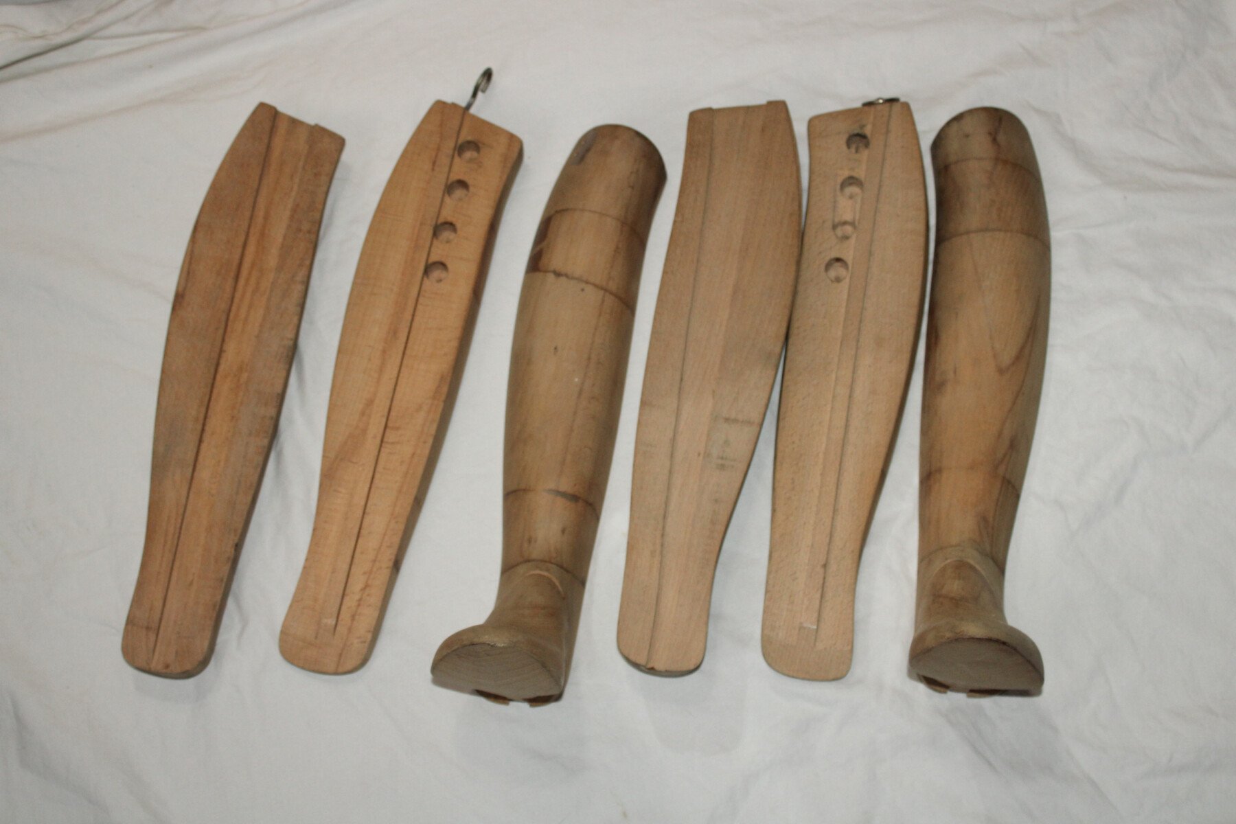 Paires d'embauchoir en bois en trois parties pour maintenir et donner une bonne forme de botte. Fabrication ancienne.