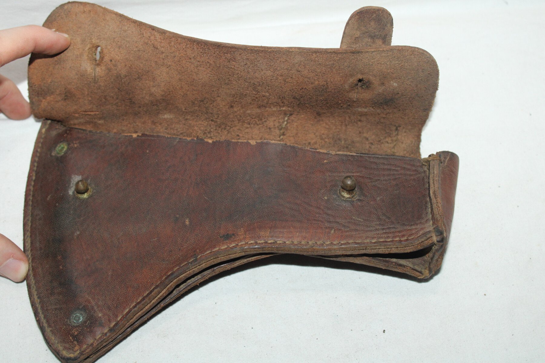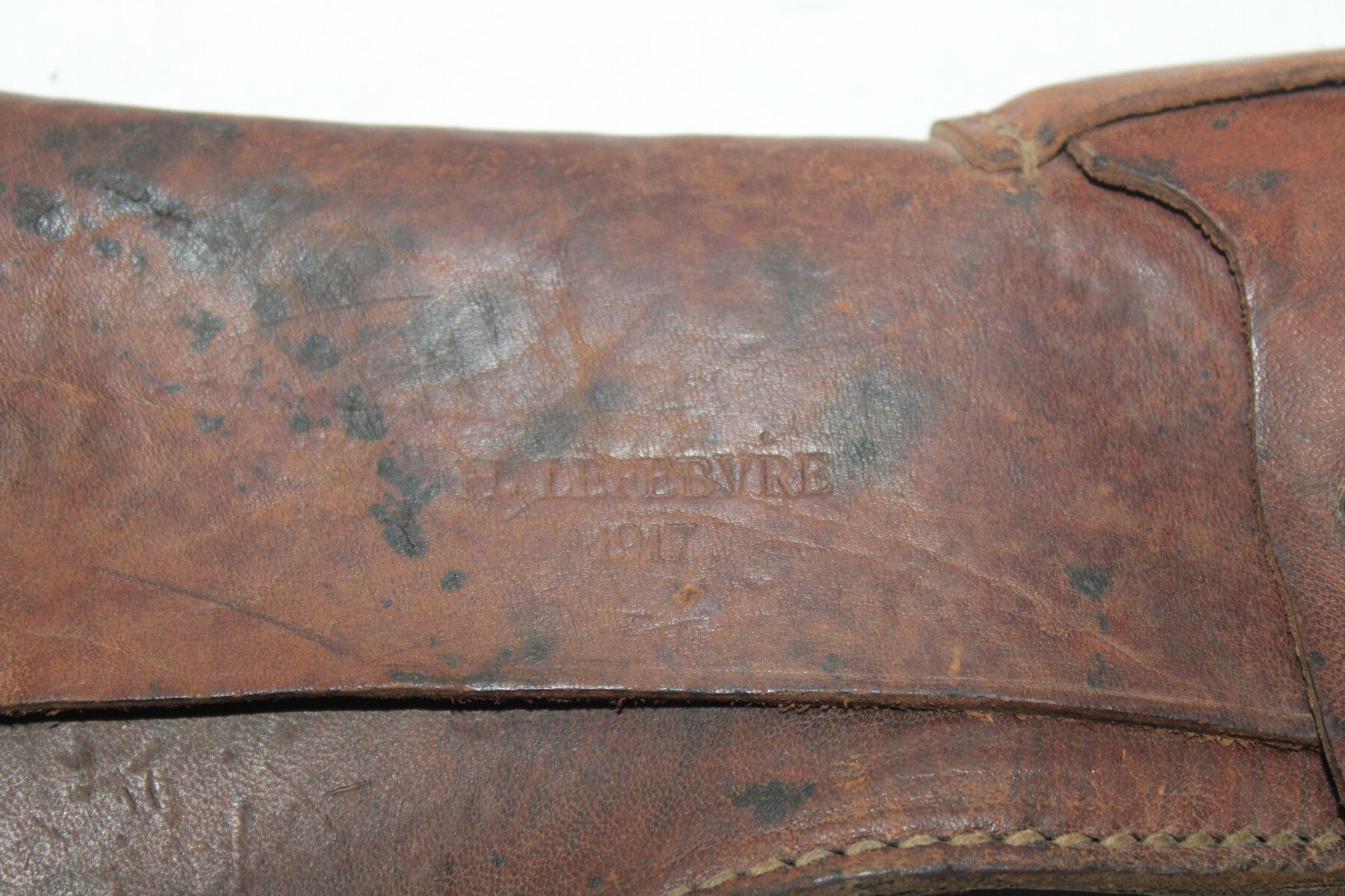 Etui de hache en cuir. Fabrication H.Lefebvre 1917. Complete. Cuir souple.