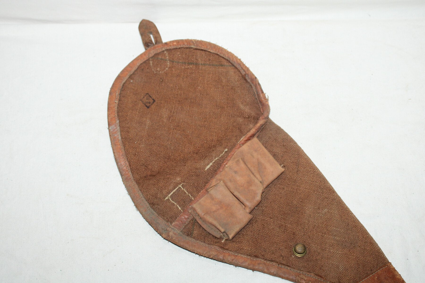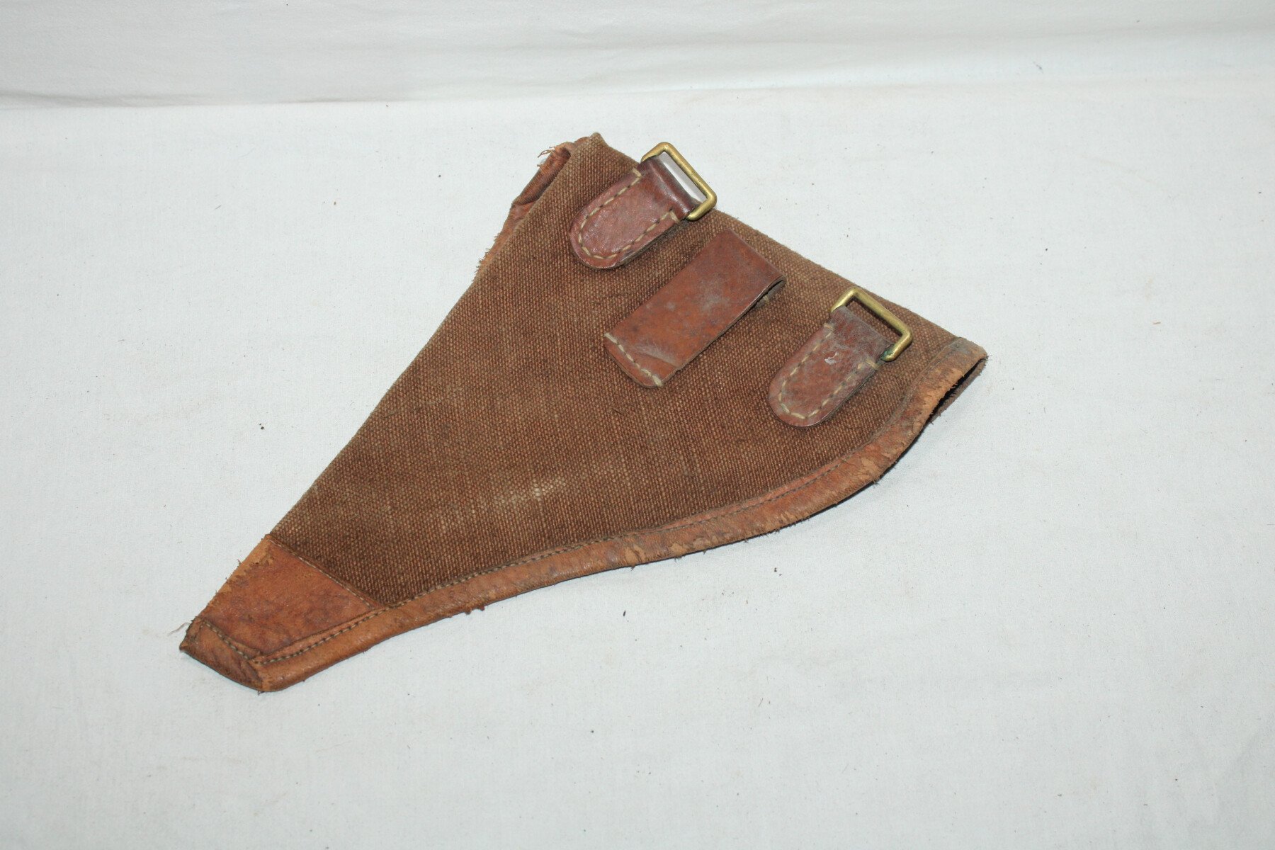 Etui pour revolver 1892 en toile et cuir de fabrication ersatz. Tampon sur le rabat. Bon état général.