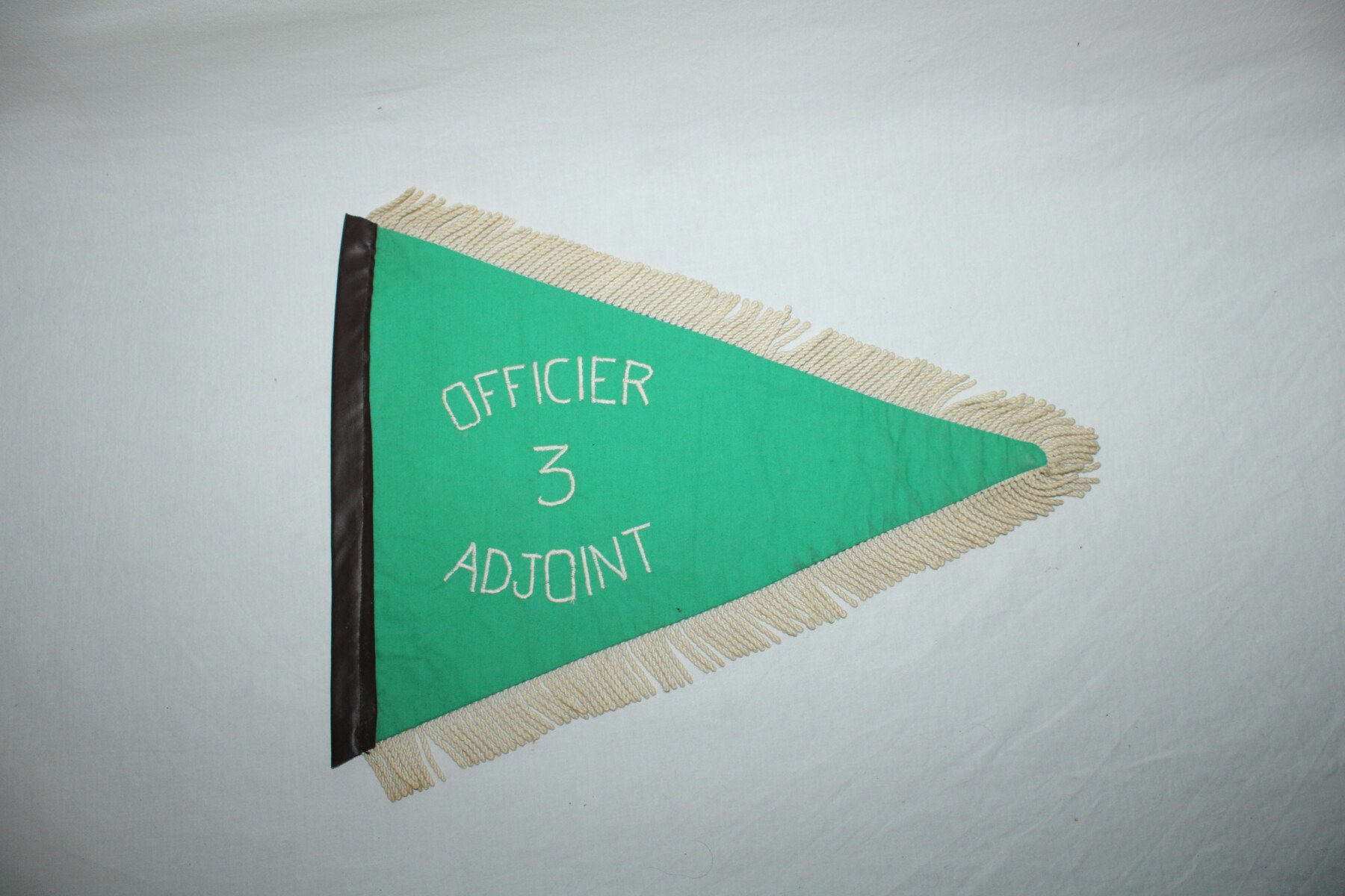 Fanion souvenir du 3e escadron du 2e régiment de Hussard pour un officier adjoint. Les franges sont en tissus. Un fourreau en cuir est présent pour une passer une hampe. Dimension totale 45 cm de long X 32 cm de large.