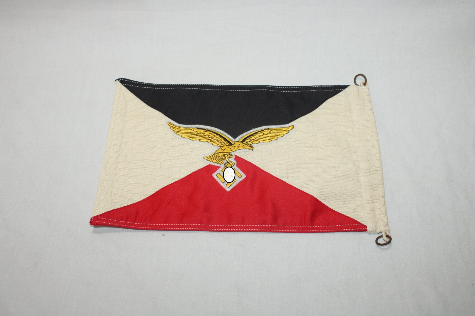 Fabrication tissu du fanion pour véhicule ou autre, d'officier Général de la Luftwaffe. Aigle brodé et rapporté de chaque coté, travail soigné. Dimension 34 cm de long par 21 cm de large....