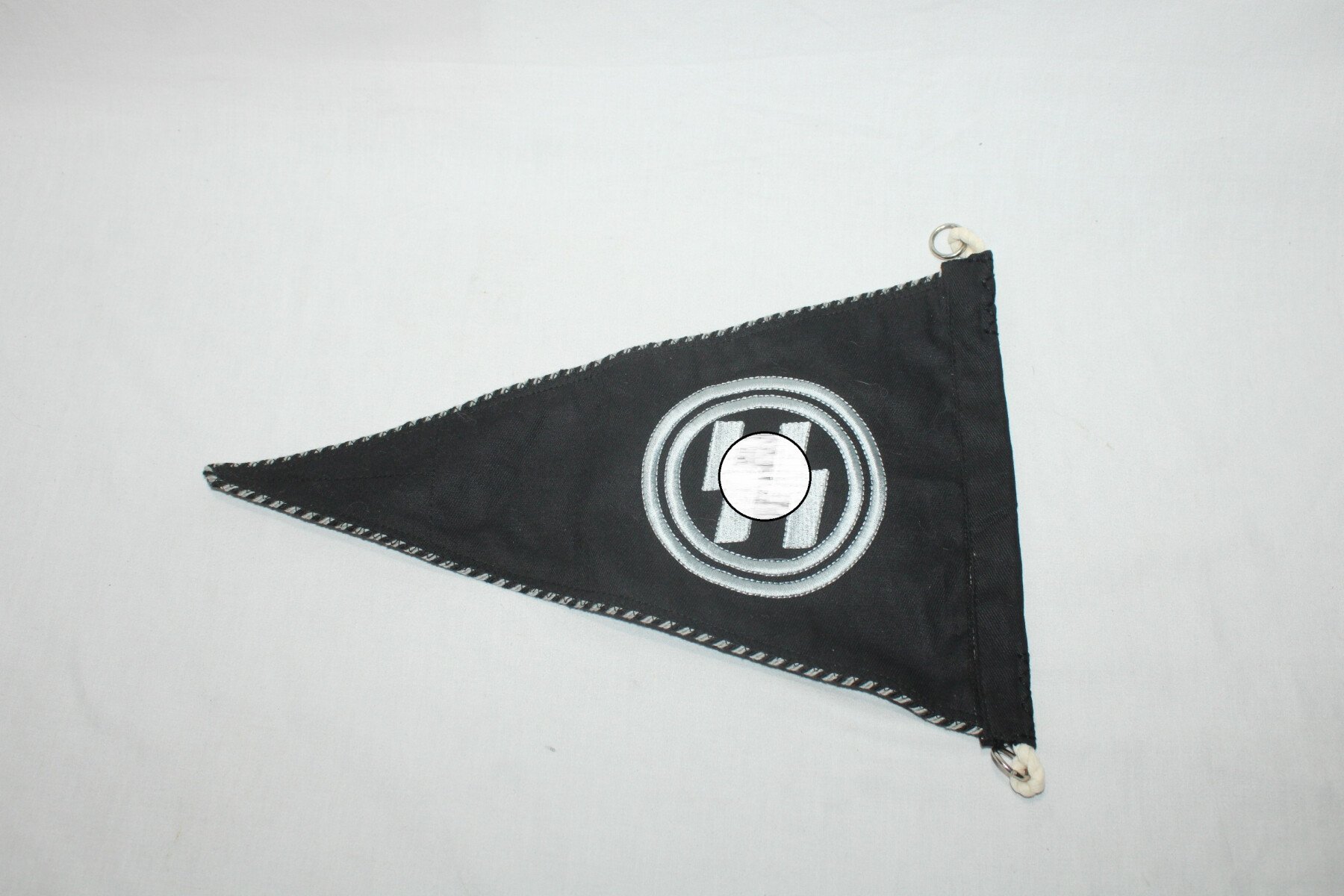 fabrication tissu du fanion de véhicule ou autre de la Waffen SS. Runes et cercles brodés. Avec 2 anneaux de fixation, dimension 35 cm de long par 23 cm de large.