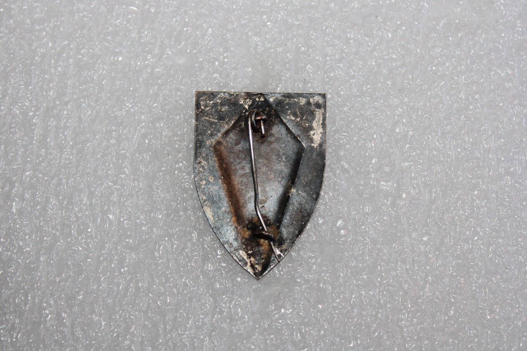 Insigne des FFI 19 (MORBIHAN) M.B, en métal argenté peint, sans fabricant. Epingle ajouté, léger éclat de peinture.