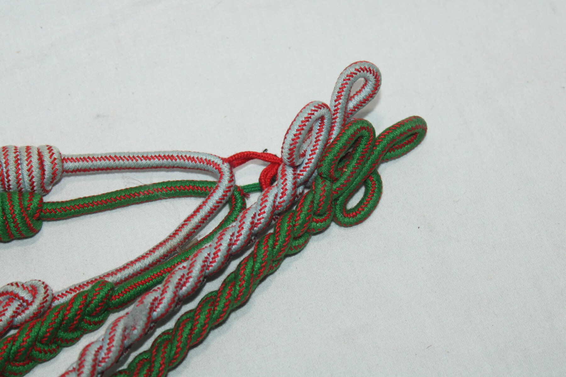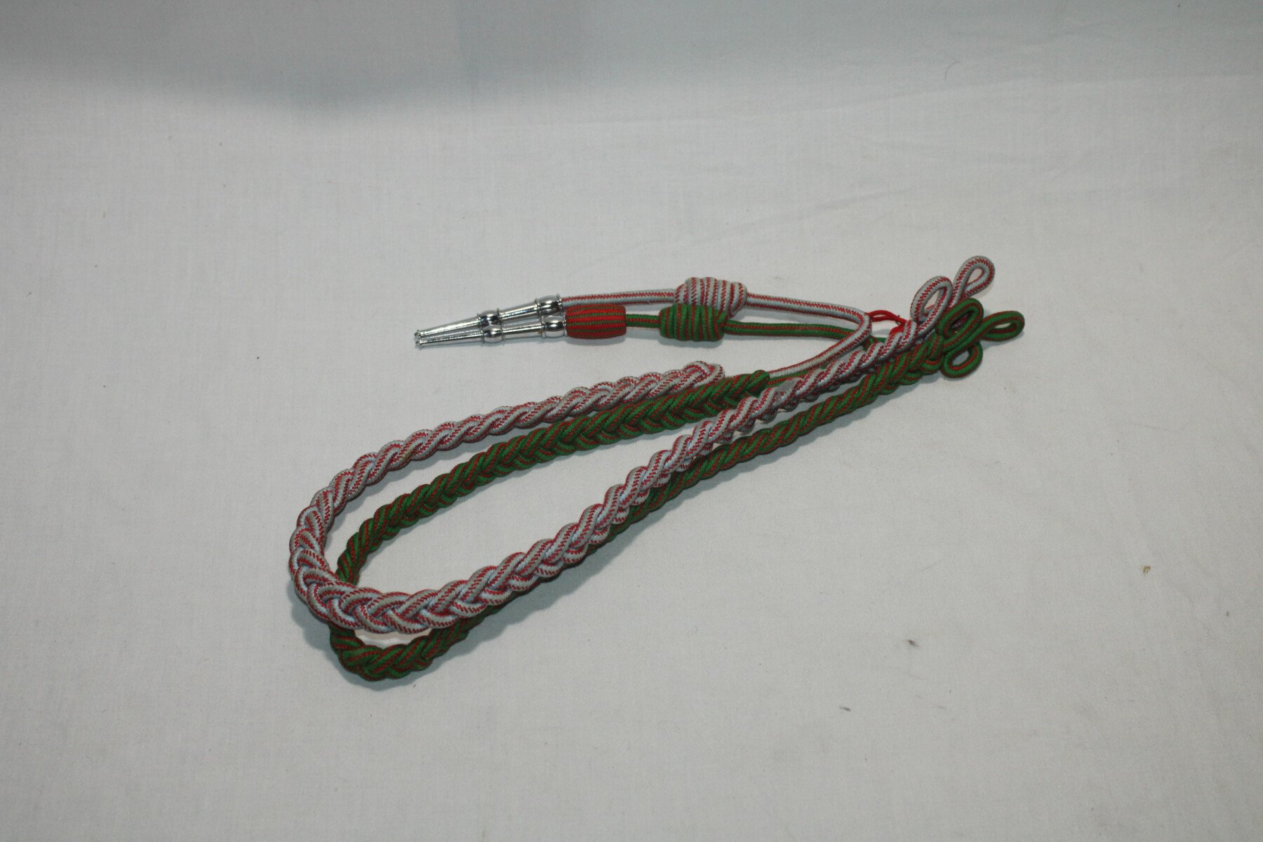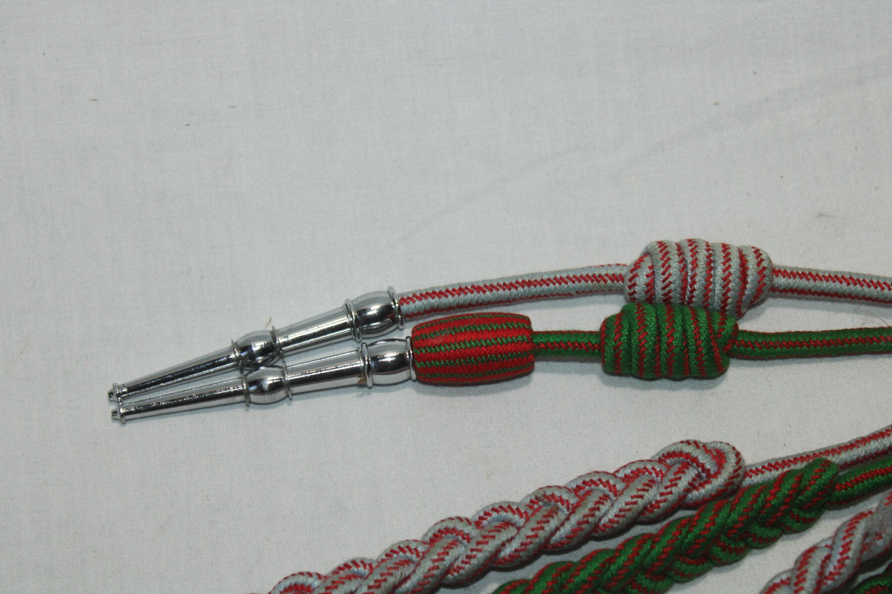 Fourragère doubles aux couleurs de la croix de guerre 14/18 et croix de guerre TOE, ferret argent pour la cavalerie. Olive croix de guerre 39/45.