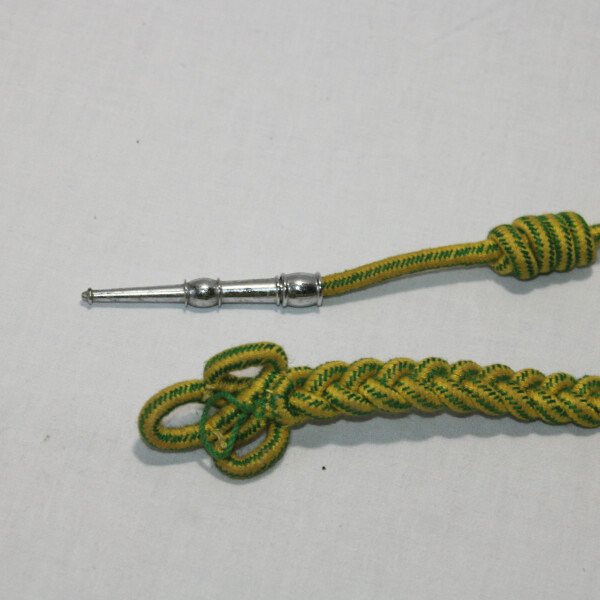 Fourragère aux couleurs de la médaille militaire, ferret argent pour la cavalerie, portée par les régiments ayant eu entre 4 et 5 citations à l'ordre de l'armée.