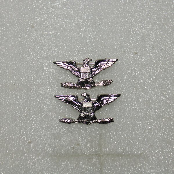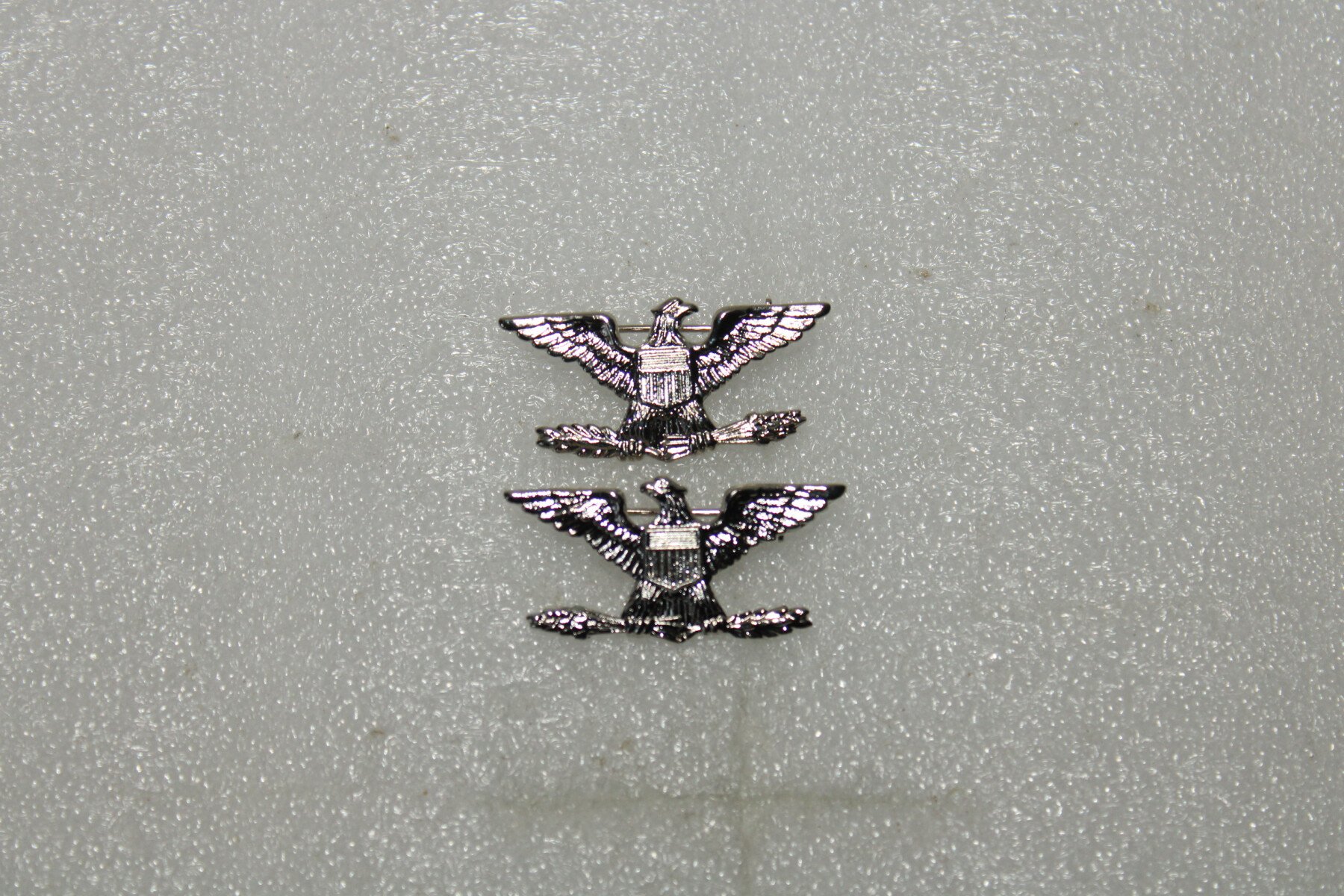 Paire de grades de couleur argent de colonel, fixation par épingle.