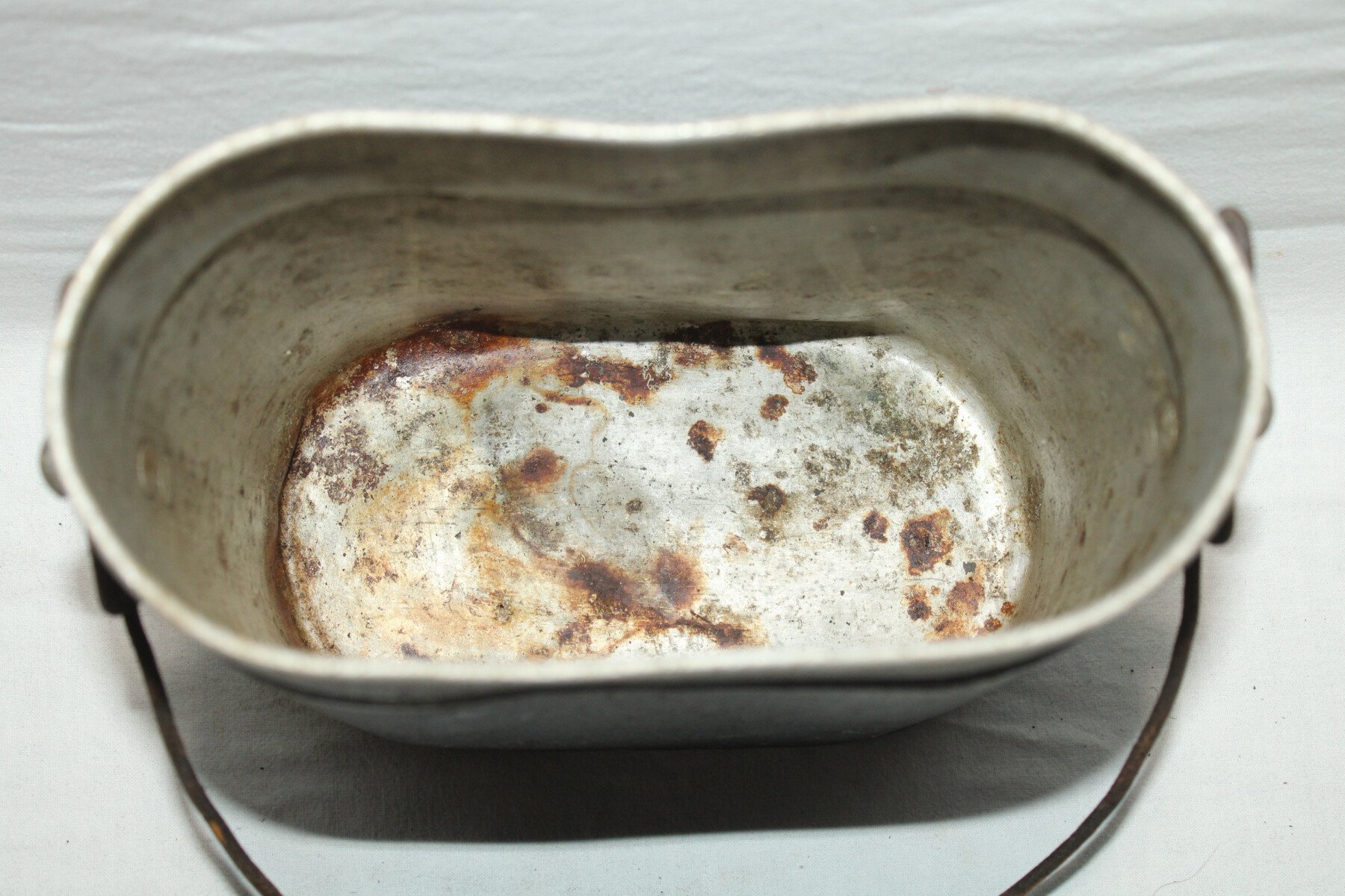 Gamelle d'essais modèle 1909 en aluminium. Peinture noir, couvercle absent. Non percé. Fabrication J.J Carnaud Paris.