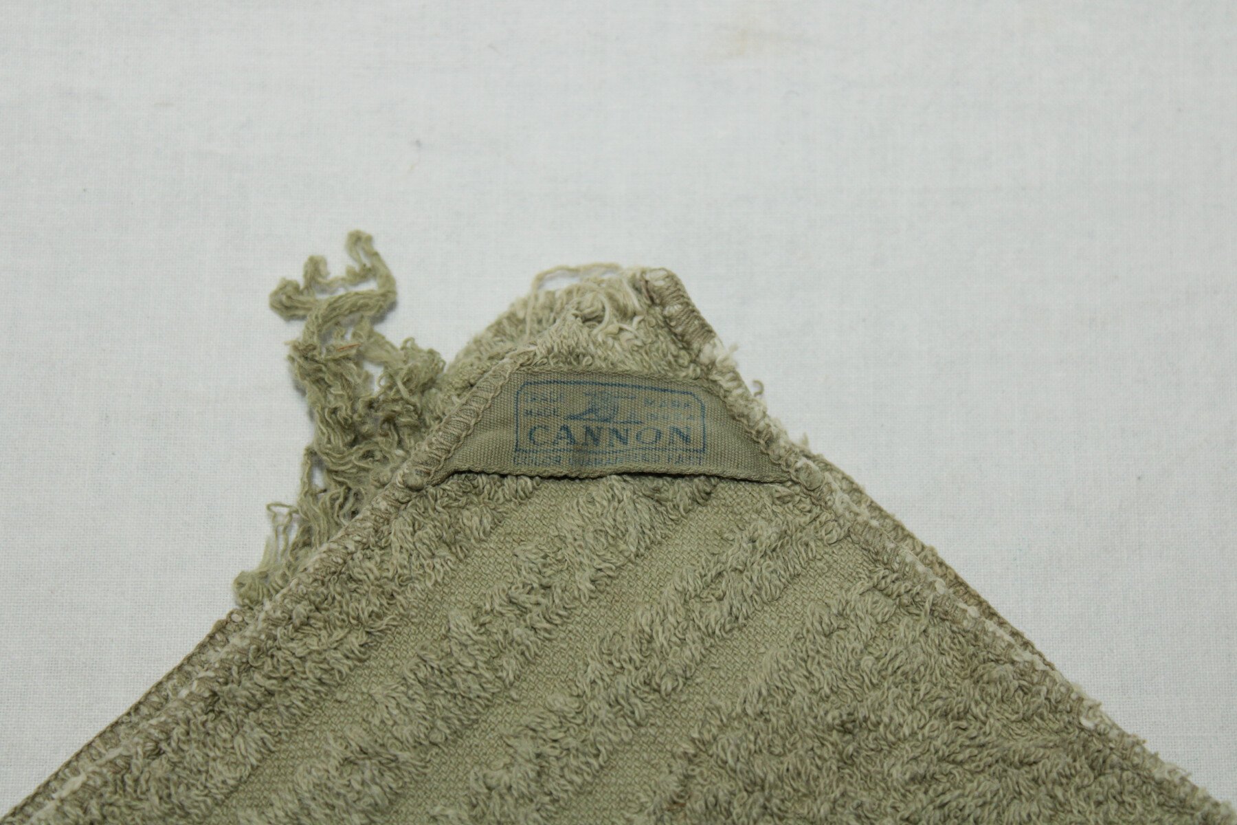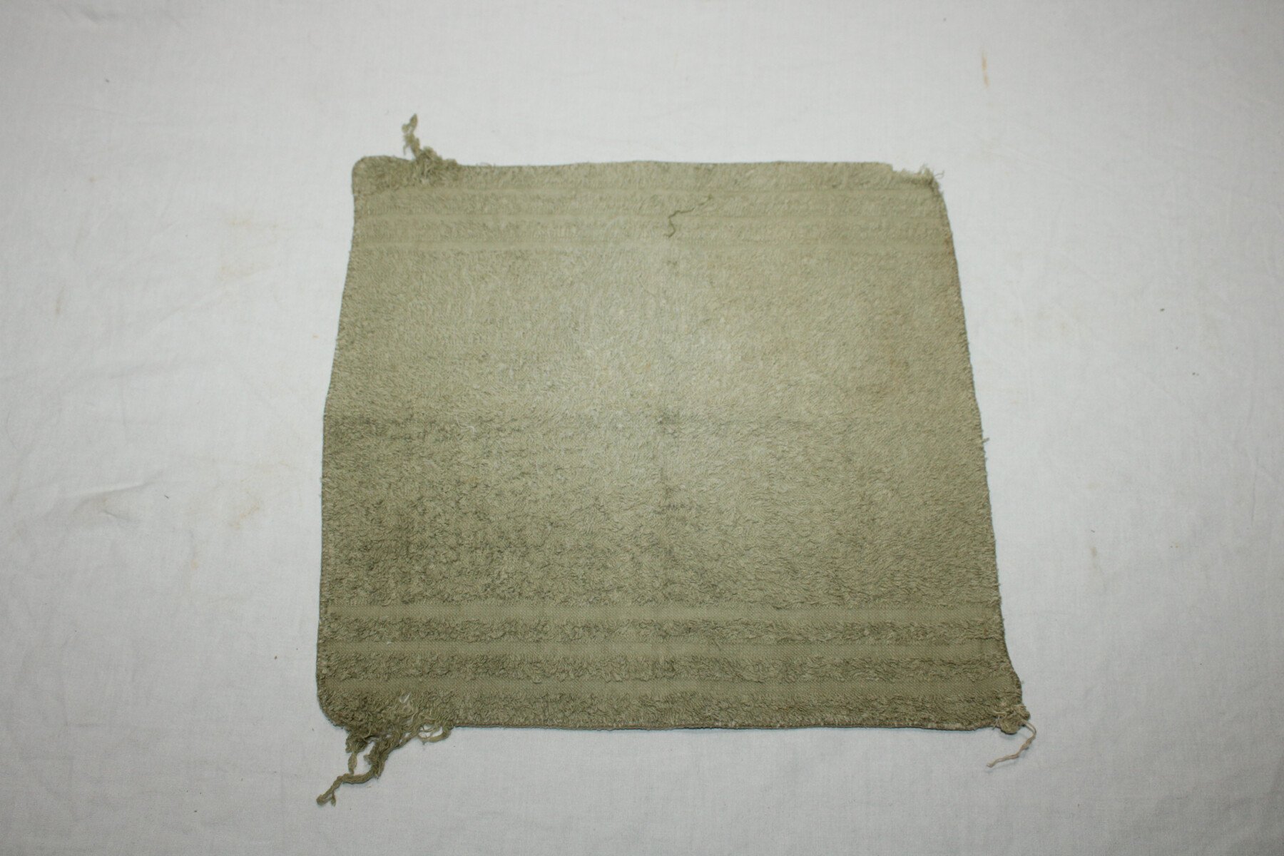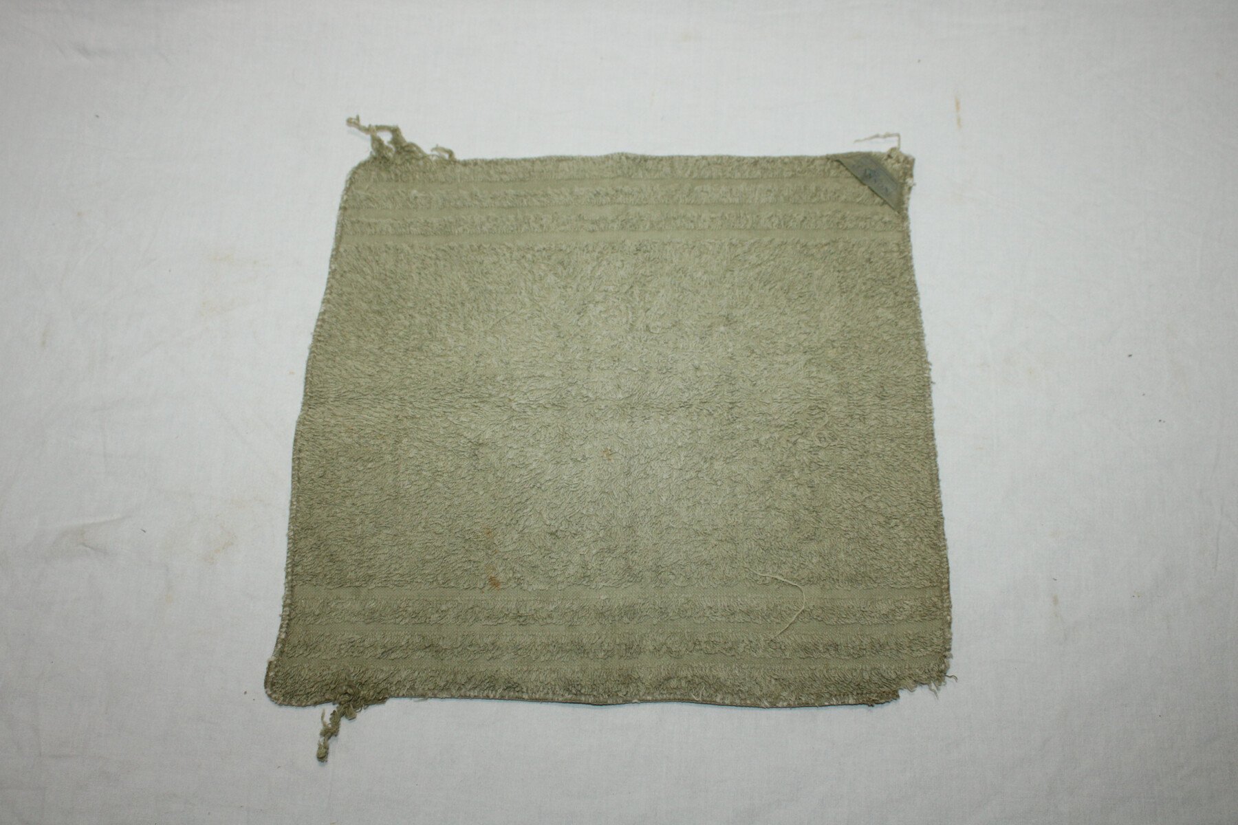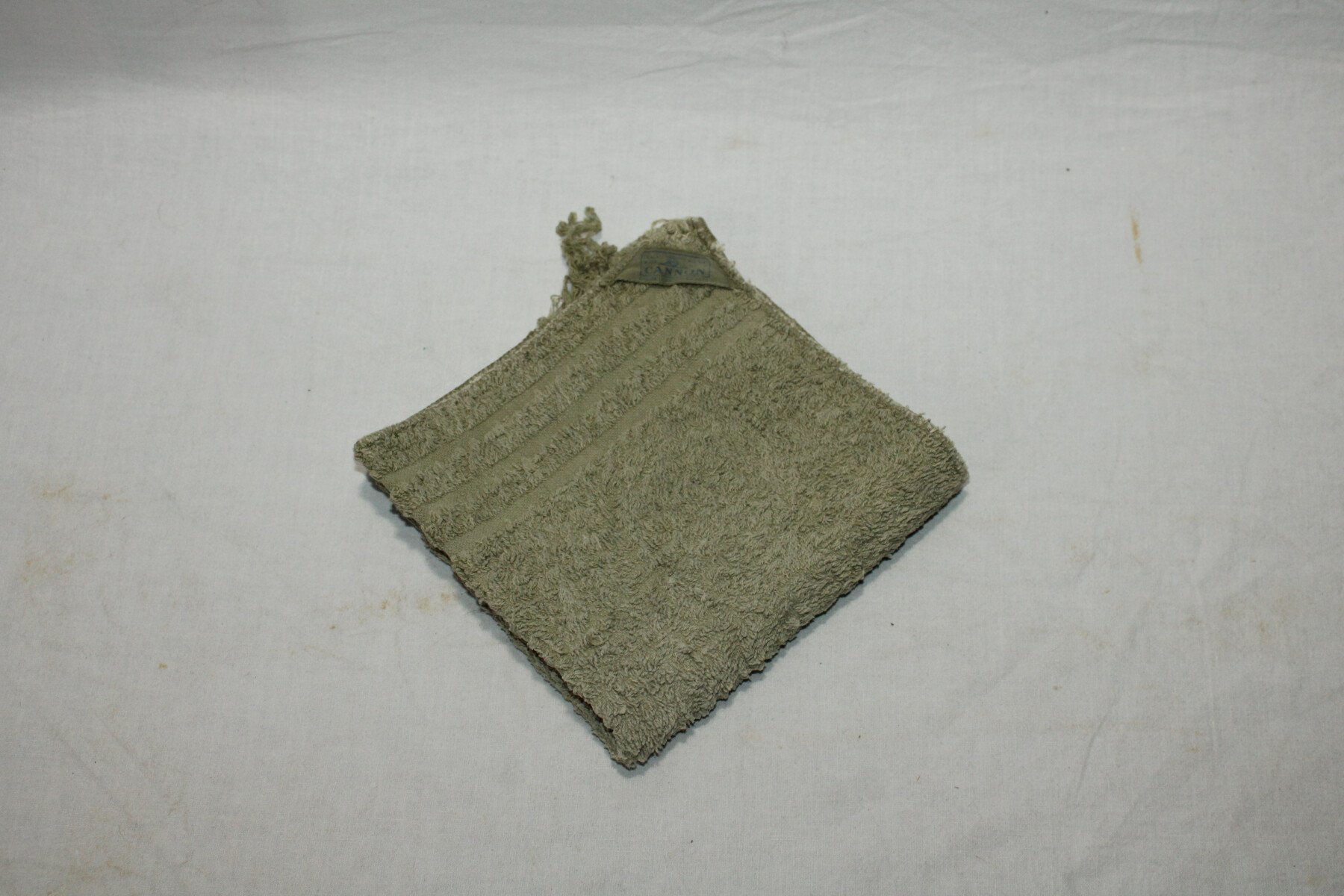 Gant de toilette kaki, fabrication Canon pour l'armée Américaine. Provient de camps cigarettes en Seine-Maritime.