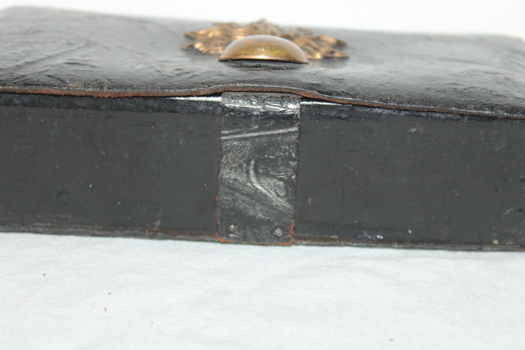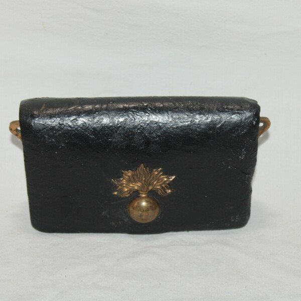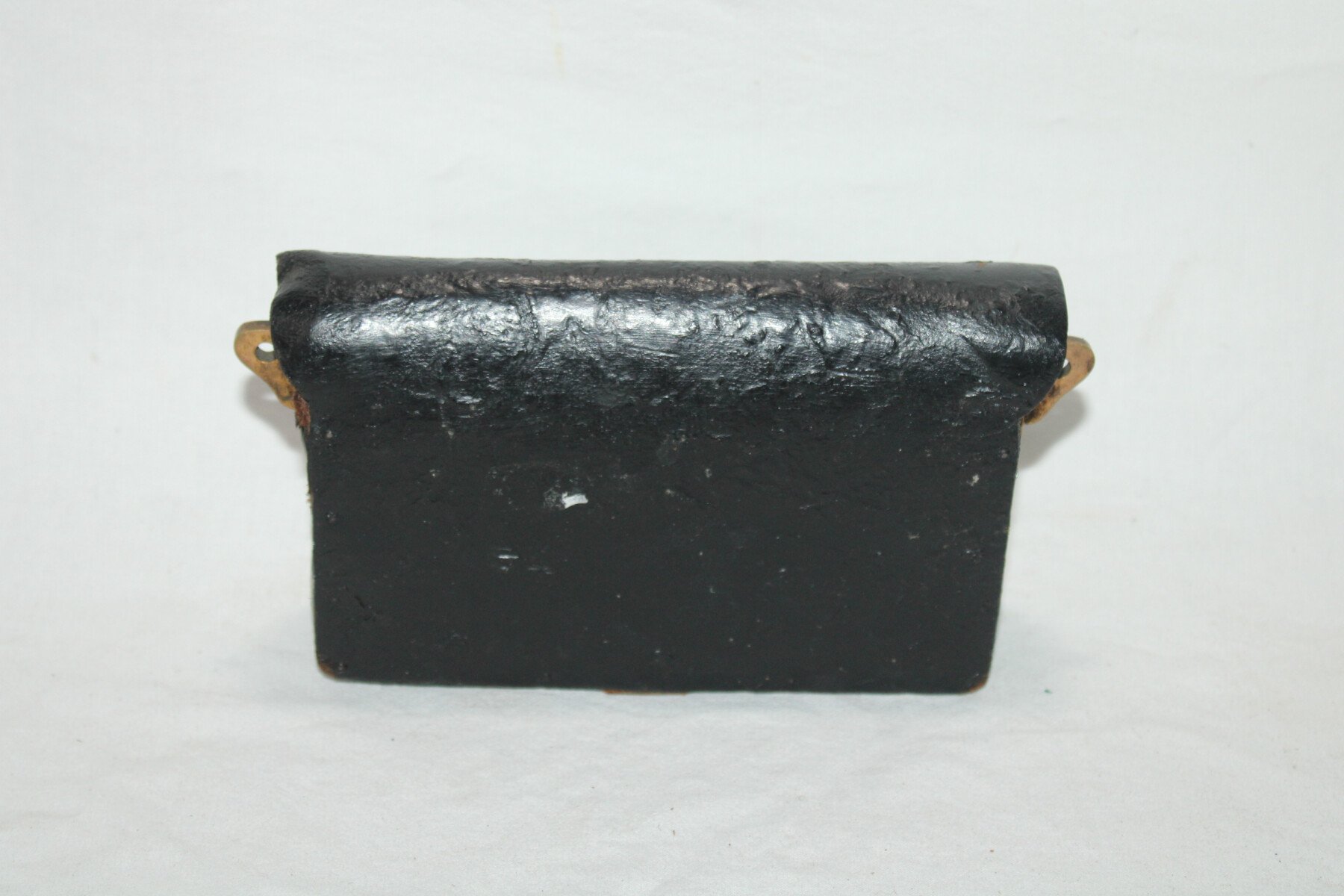 Cartouchière giberne en cuir noir. Fermeture cloutée, surement modification costumier.