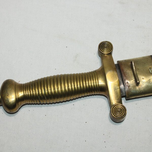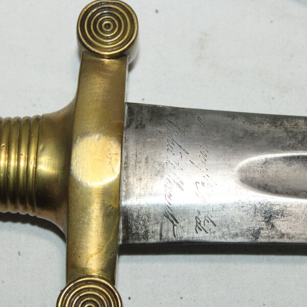 Glaive d'infanterie modèle 1831 avec sont fourreau aux même numéro. Glaive marqué Manufacture de Châtellerault et daté 1852. Cuir du fourreau en bon état légèrement rétrécie et légèrement décousus.