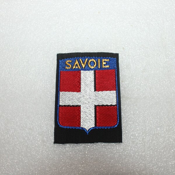 Insigne du groupement Savoie de l'organisation Jeunesse et montagne. Fabrication tissés.Jeunesse et montagne (JM) est une organisation créée en août 1940, après la défaite, par l'Armée de l'air...