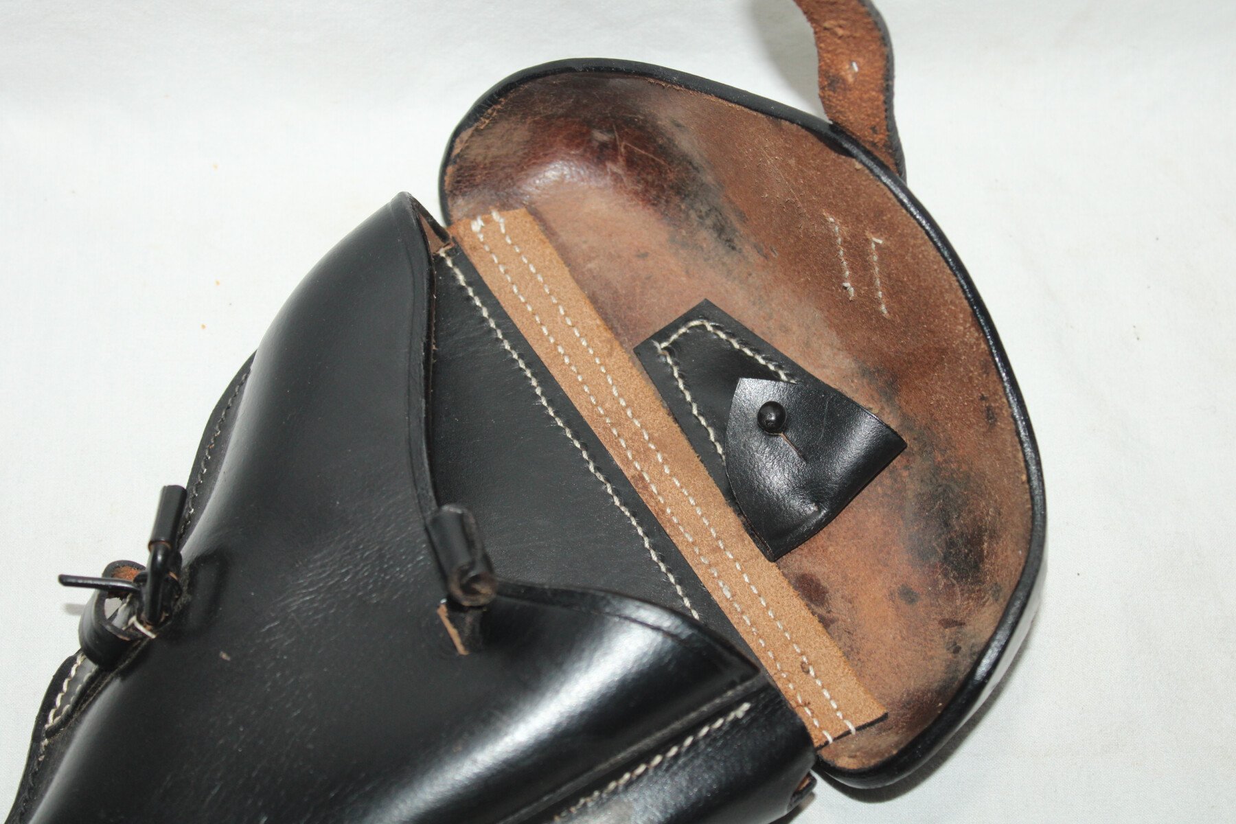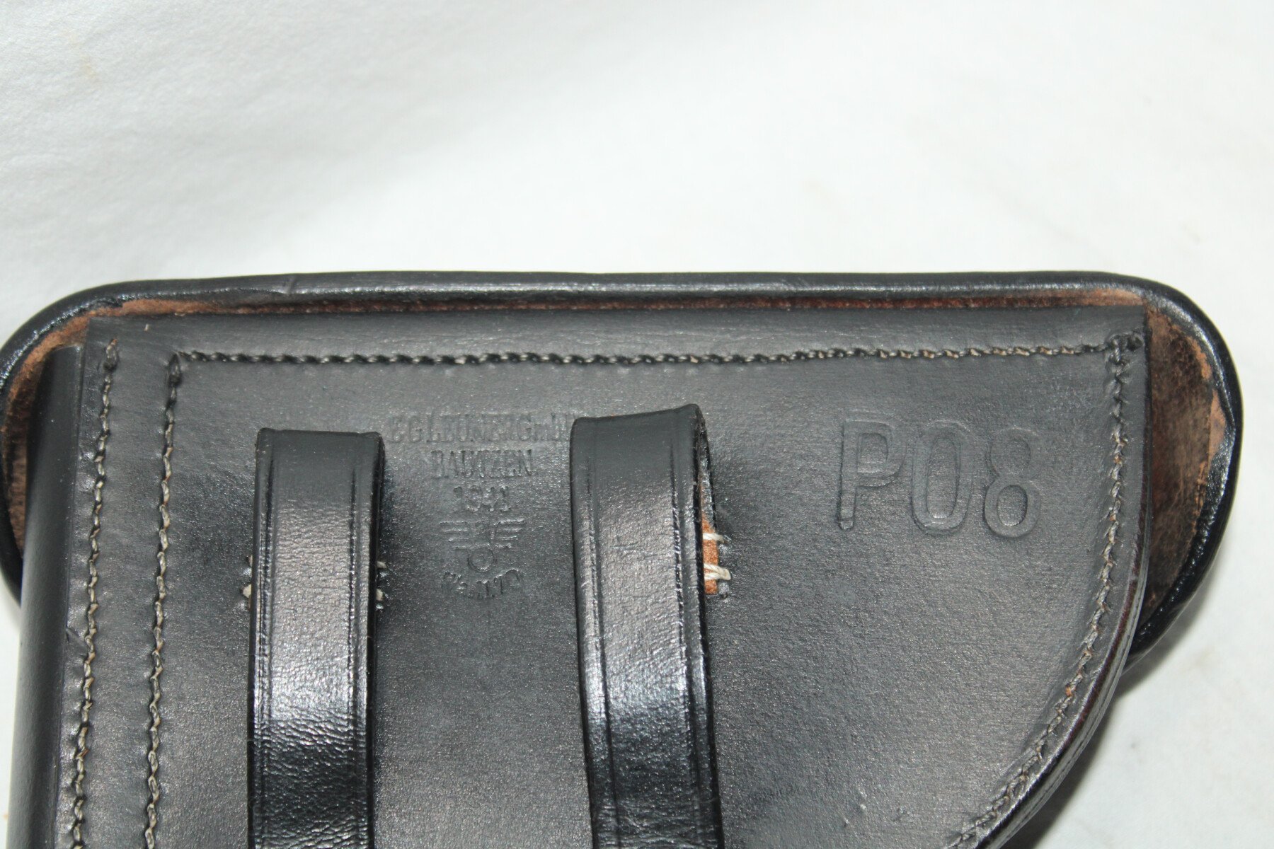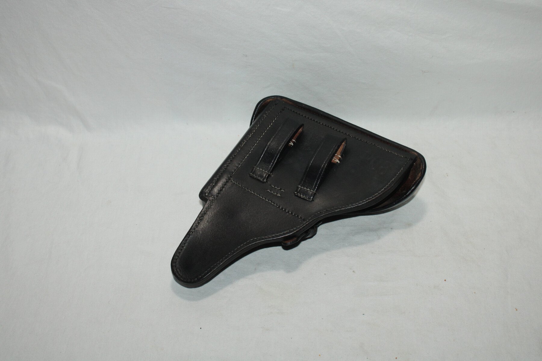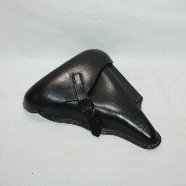 Holster pour pistolet P08 en cuir noir.
