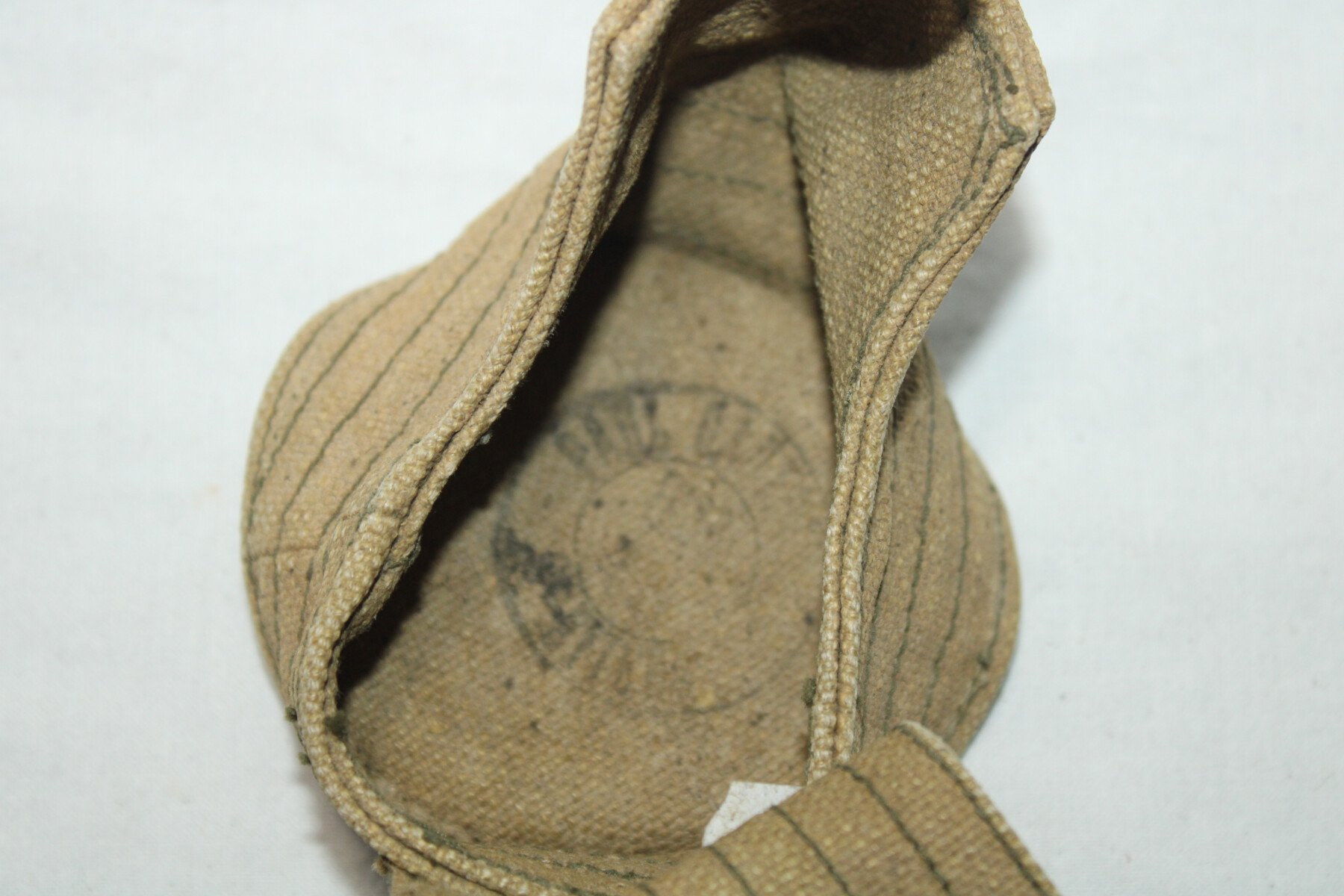 Housse en toile pour le détecteur de CO modèle 1936. Bon état général. Tampon présent mais pas de date visible.