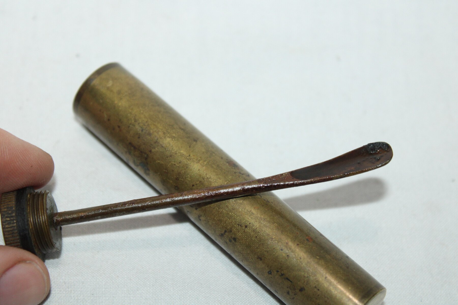 Huilier en Laiton avec pour l'entretien de l'arme. Contenus dans la crosse de Lee Enfield, Sten et dans la trousse d'entretien du Bren.