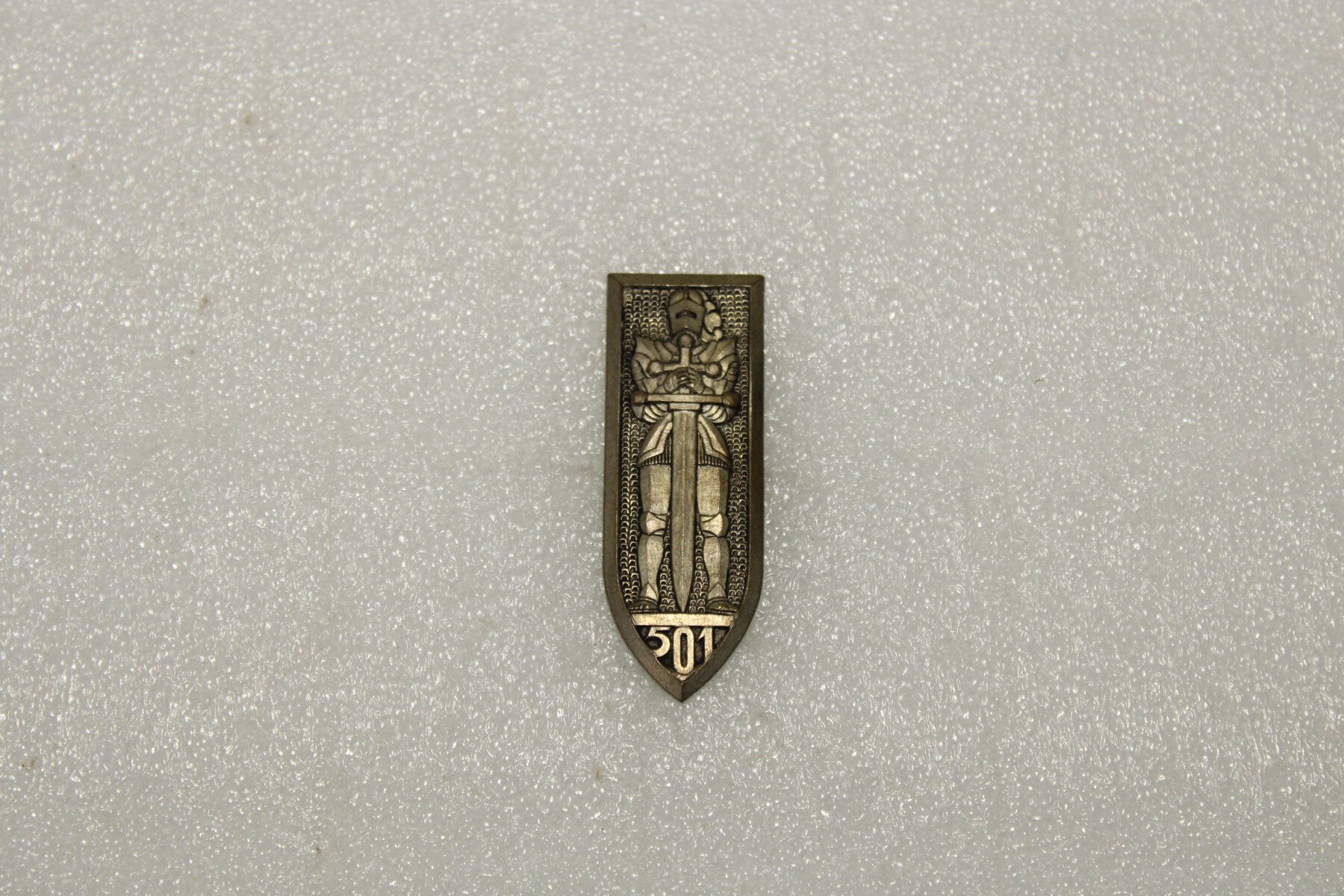 Insigne du 501e régiment de char de combat. ce regiment servit au sein de la 2e division blindée du général Leclerc et fut parmi les 1er à rentrée dans Paris le 25 aout 1944.